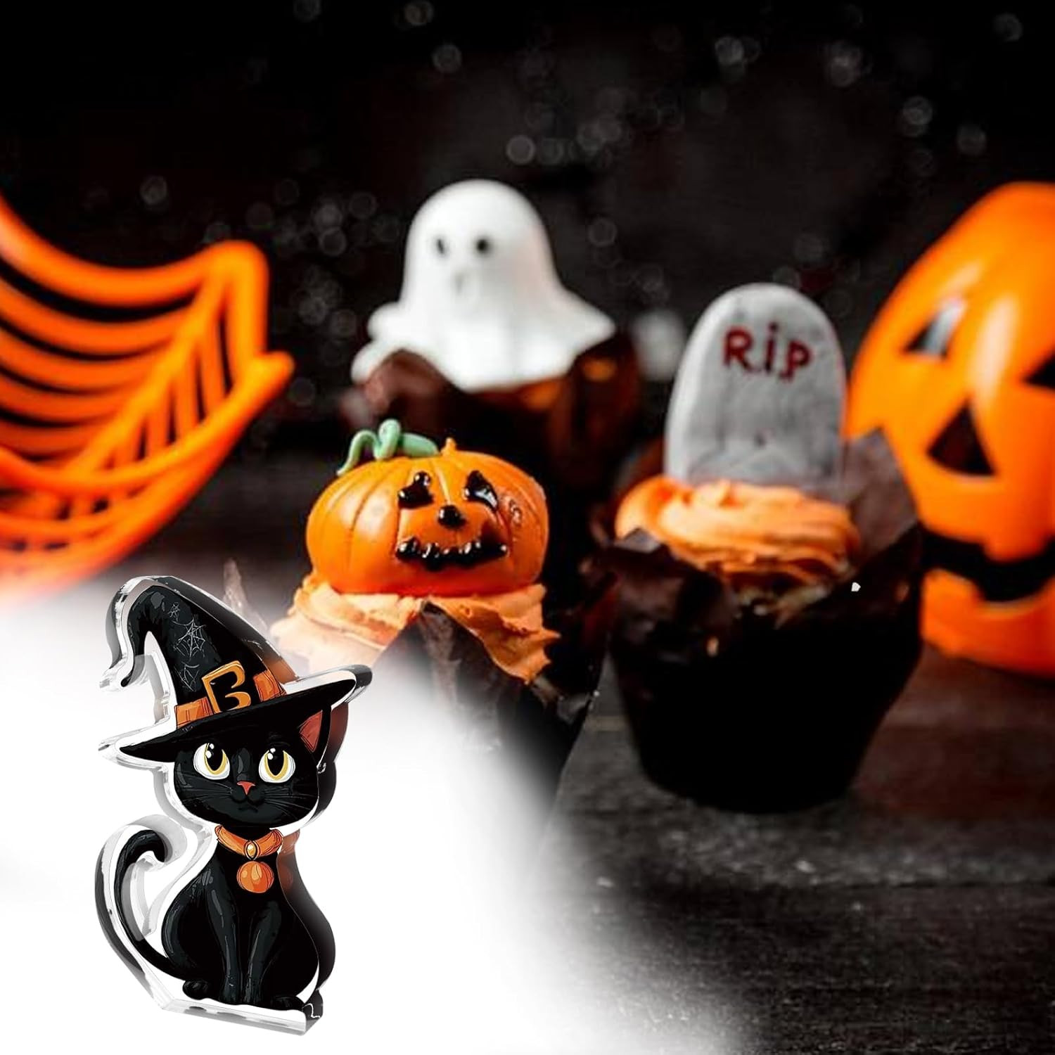 как выглядит Halloween Black Cat Gifts Decor for Women Men Teen Boys Girls Acrylic Cute Cat w фото