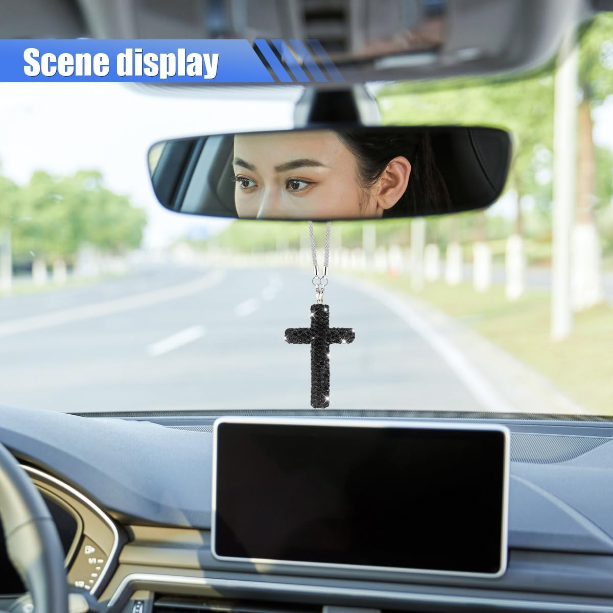 Bling Cross Car Hanging Ornament, Crystal Rhinestone Car Rearview Mirror Pendant