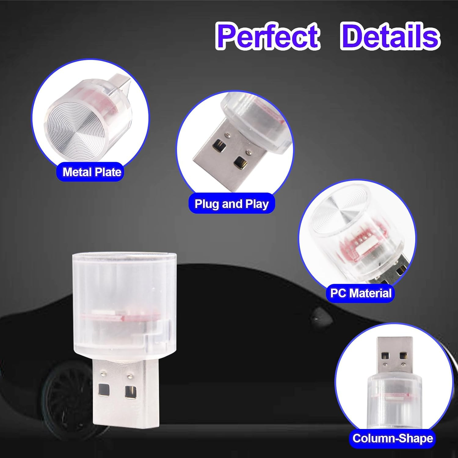 USB LED Car Interior Night Light, 2 Pcs, Atmosphere Lamp, Mini Decoration Light,