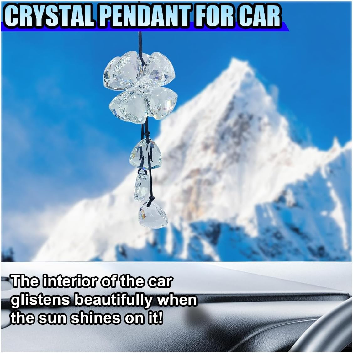 Bling Diamond Four Leaf Clover Car Rear View Mirror Pendant Accessories, Crystal