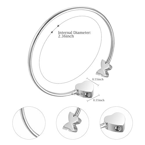 Urn Bracelet for Human Ashes Butterfly Heart Ash Bracelet for Women Silver