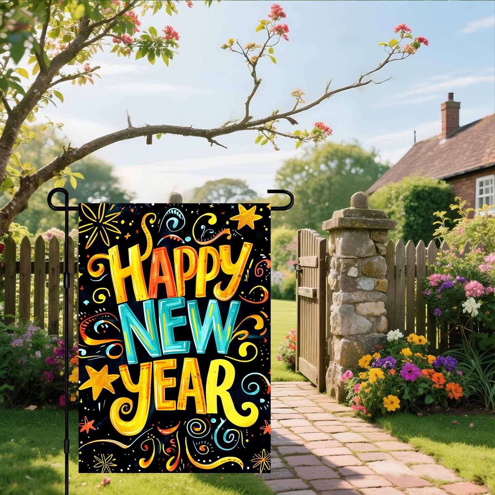 IVN New Year Garden Flag 12x18 Inch Double Sided Colorful Swirl