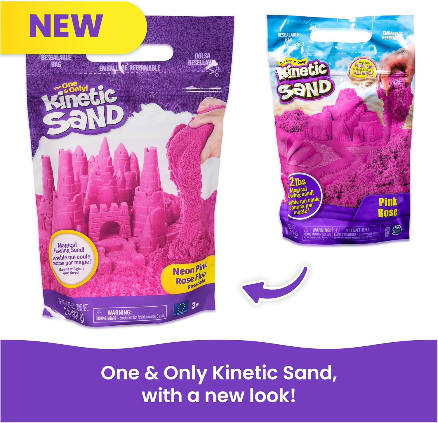 , 2Lbs Pink Play Sand, Moldable Sensory Toys for Kids, Resealable Bag Packag...
