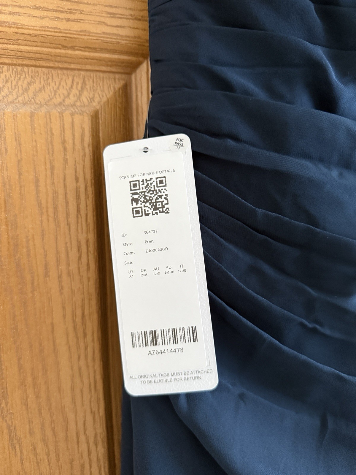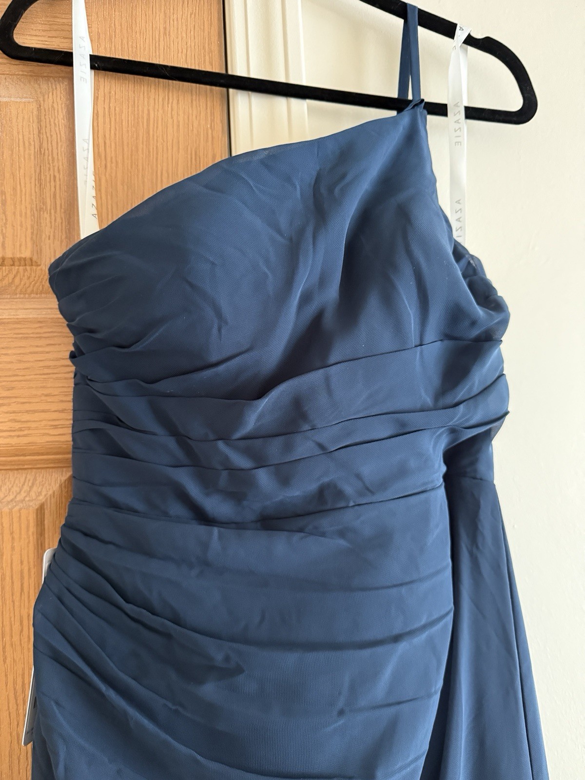 как выглядит NWT Azazie Bridesmaid Dress Dark Navy Karina A-Line Pleated Chiffon Size A4 фото