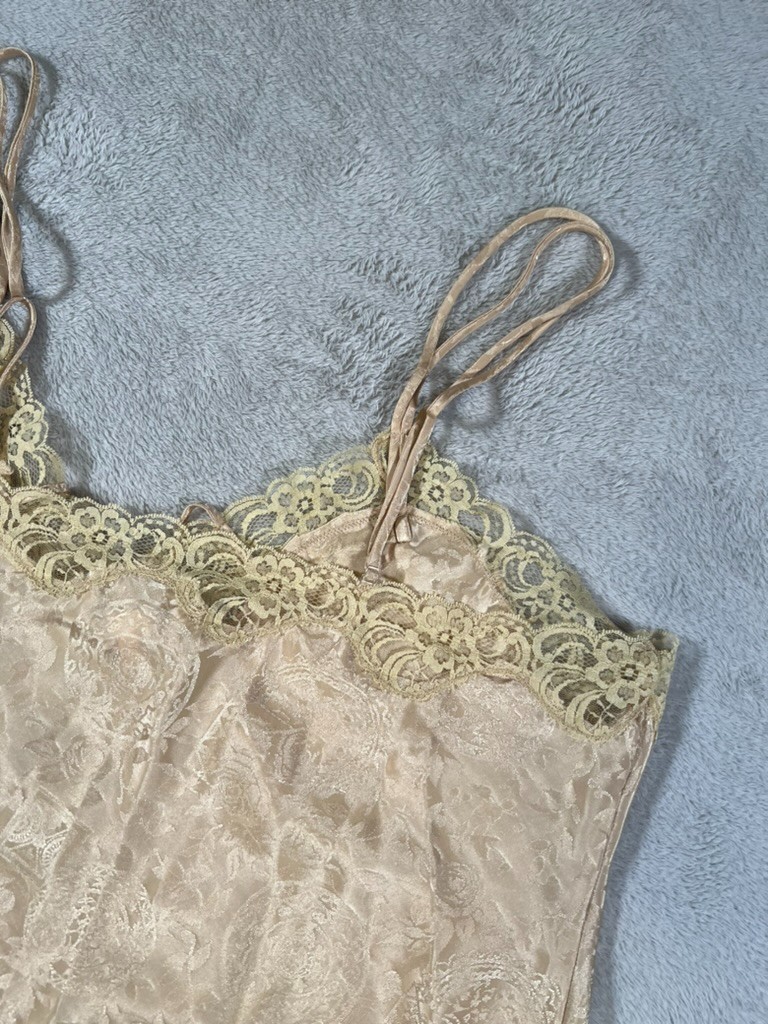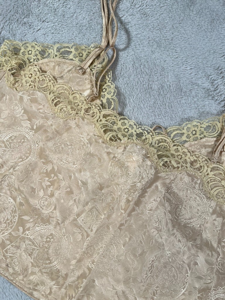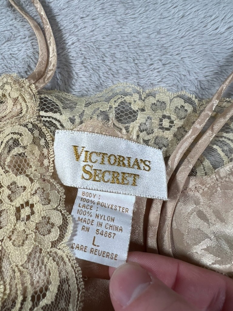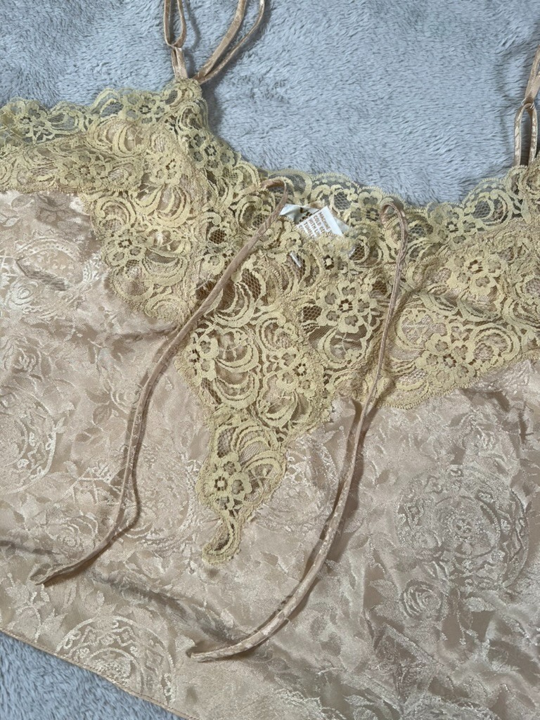 как выглядит Vintage Victorias Secret Gold Label Gold Cami Shorts Satin Lace Lingerie Set фото
