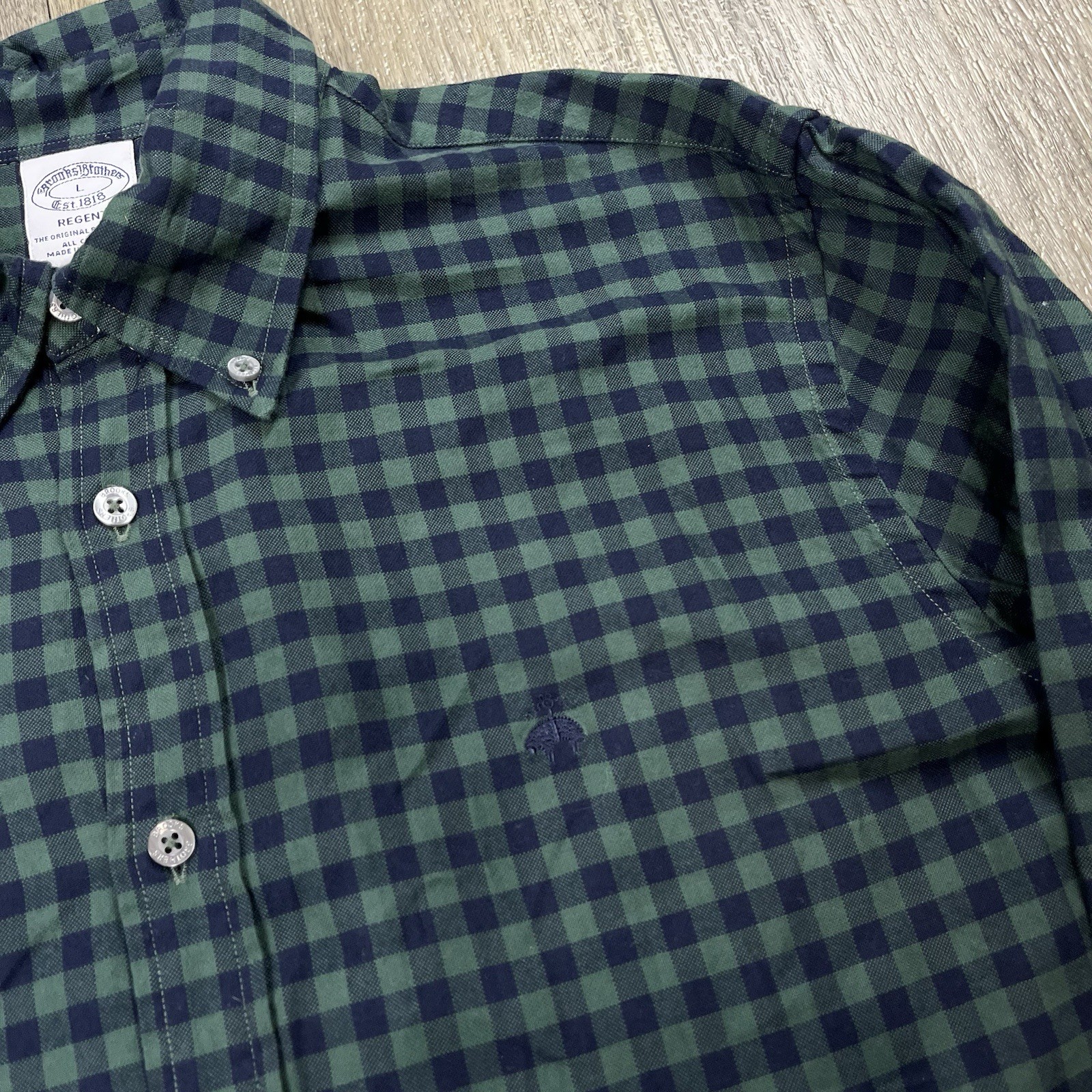 Brooks Brothers Regent Button Down Shirt Men s Large Green Plaid Long Sleeve