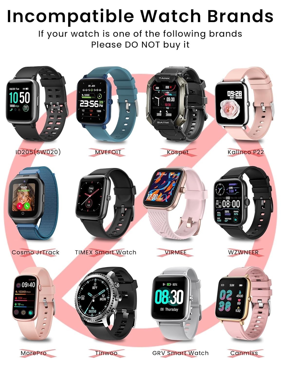 Совместимая модель: Wyze, Willful, Letsfit, Yamay, Fitpolo, Tozo, Umidigi, Blackview, AcclaFit, Aeac, AGPTEK LW11, AGPTEK LW31, AZTTKIA, BIGGERFIVE