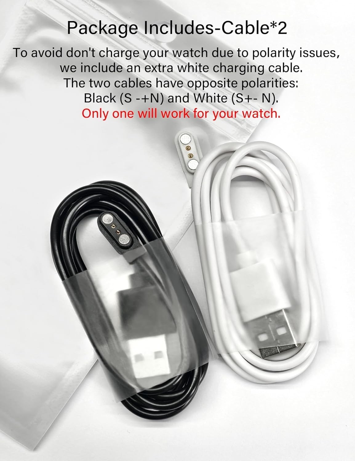 Universal 3.3Ft Magnetic Charging Cable for Smartwatches - Black White