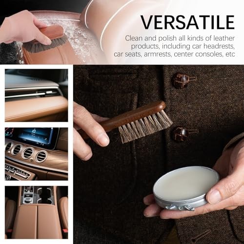 2PCS Horse Hair Brush for Leather,Soft Car Detailing Brushes Set with Concave