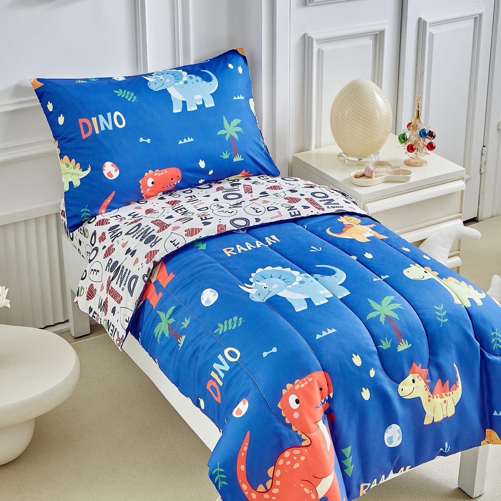 Dinosaur Toddler Bedding Set for Boys Girls Navy 4 Pieces Toddler Bed Set - U...