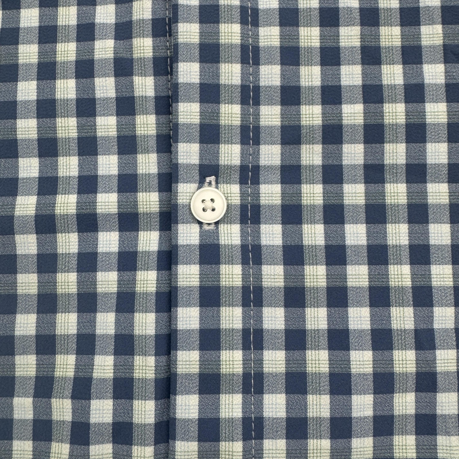 как выглядит Mizzen Main Leeward Dress Shirt Mens Large Blue Gingham Classic No Tuck Stretch фото