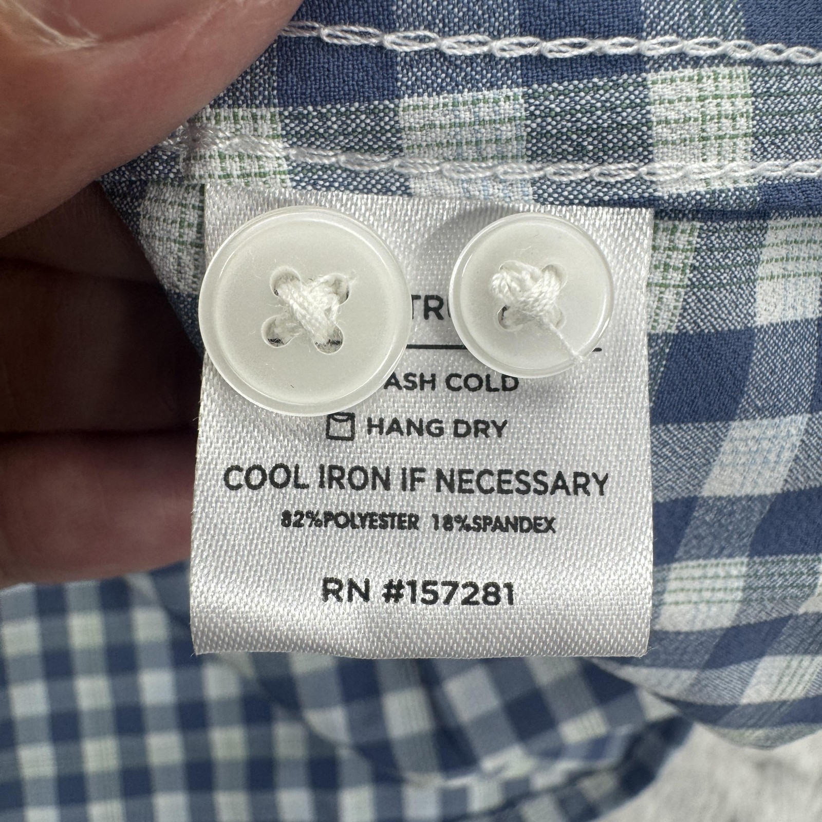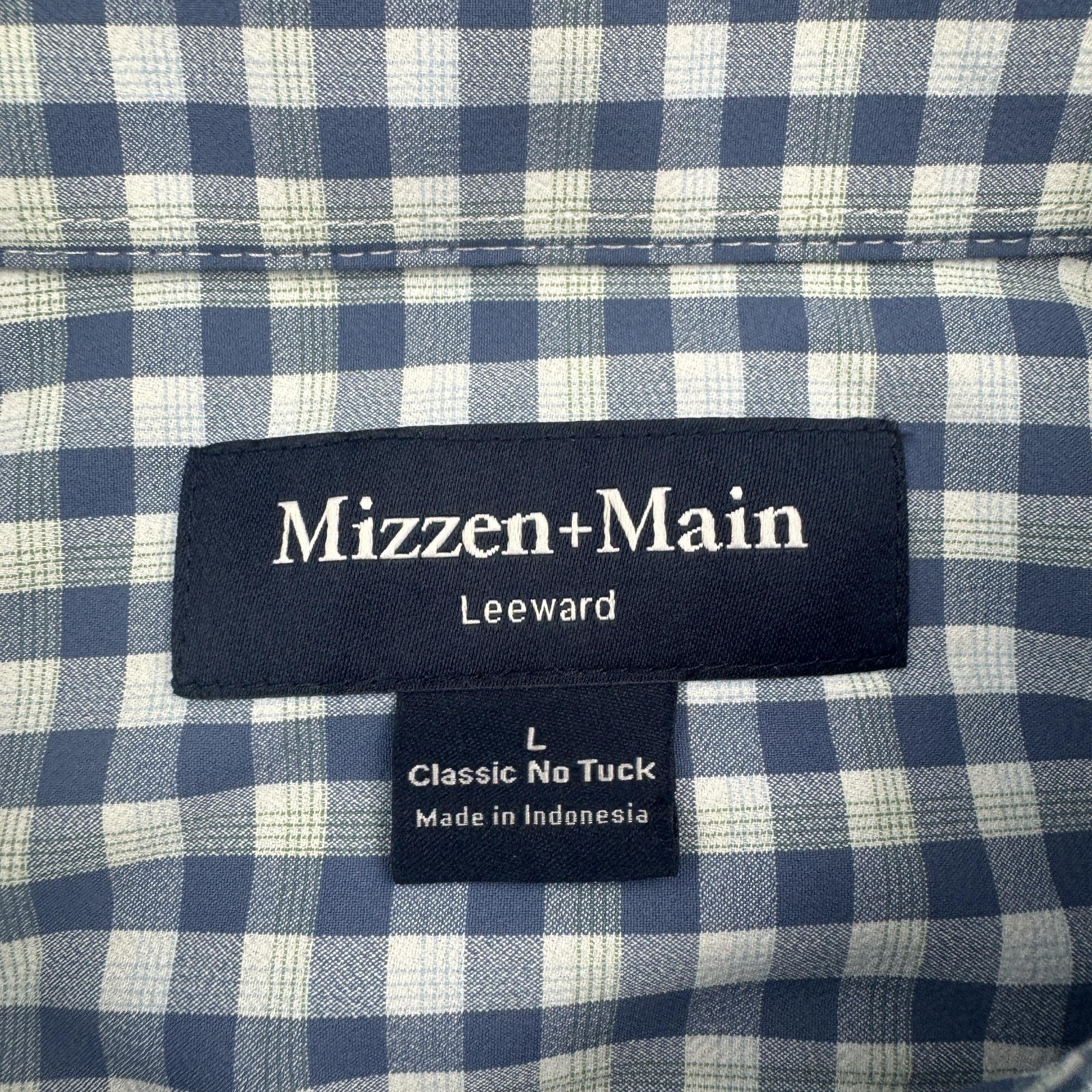 Mizzen Main Leeward Dress Shirt Mens Large Blue Gingham Classic No Tuck Stretch