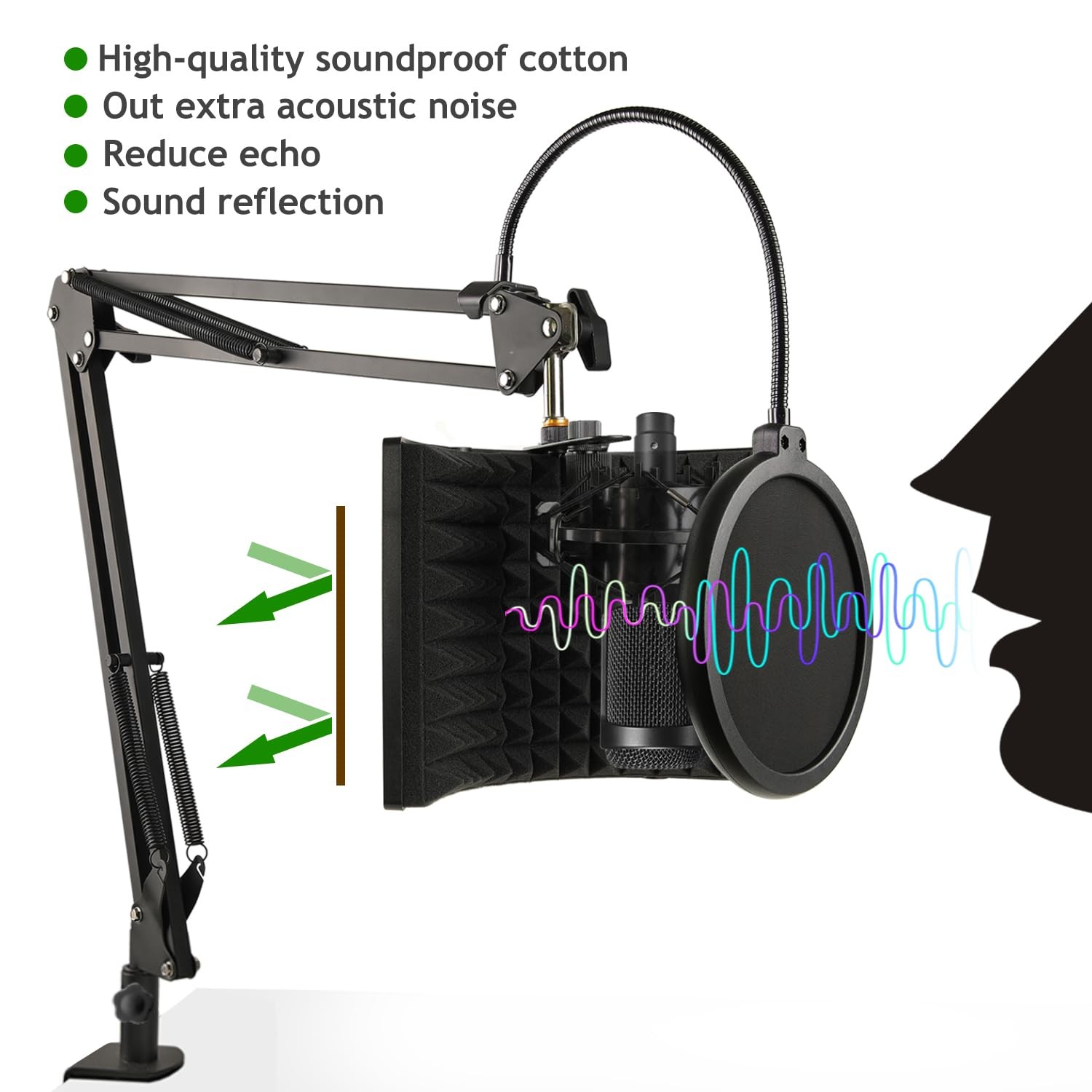 Microphone Isolation Shield with Mic Stand and Pop Filter, Foldable Sound