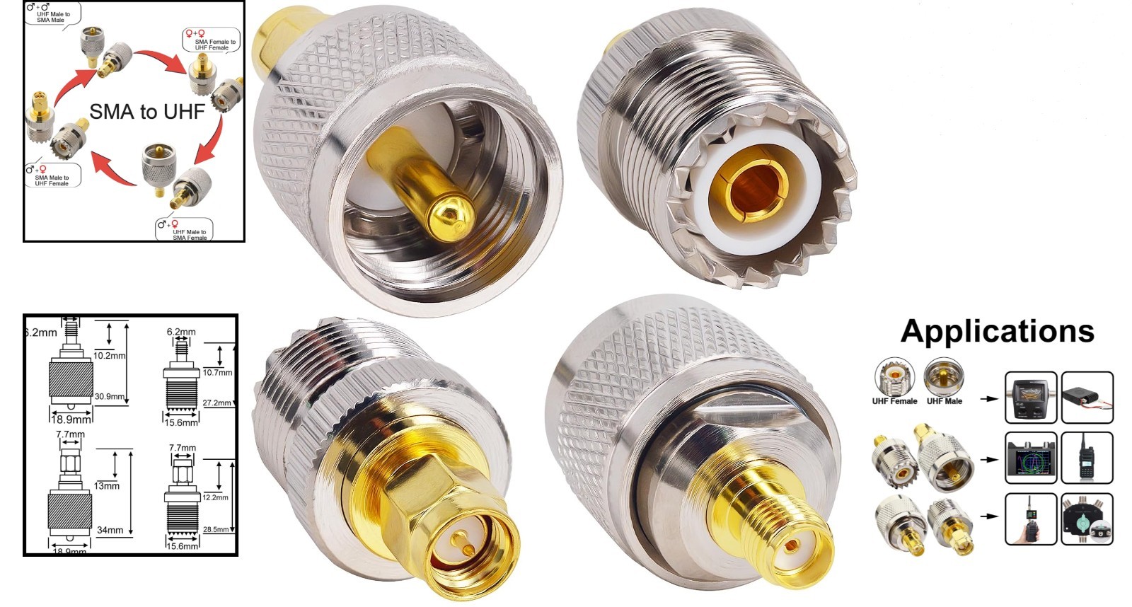4-Pack SMA to UHF Antenna Connectors: Nickle Gold for Low Loss Signal Transfer