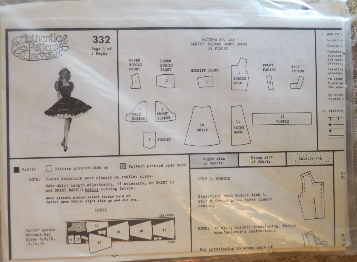 • Vintage Square Dancing Dress Authentic Patterns 332 Unused Ruffles Sz 12-14-16