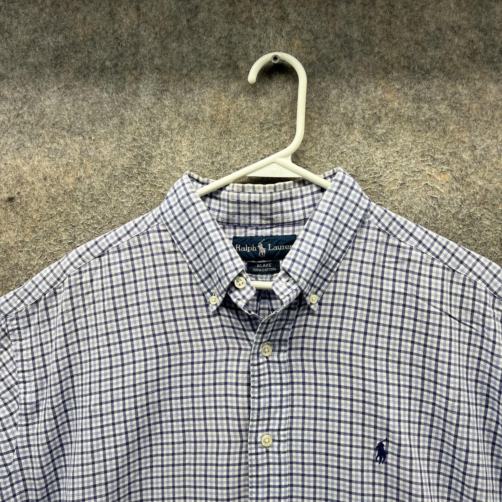Ralph Lauren Blake Shirt Mens Large Blue Check Plaid Button Down Oxford Vintage