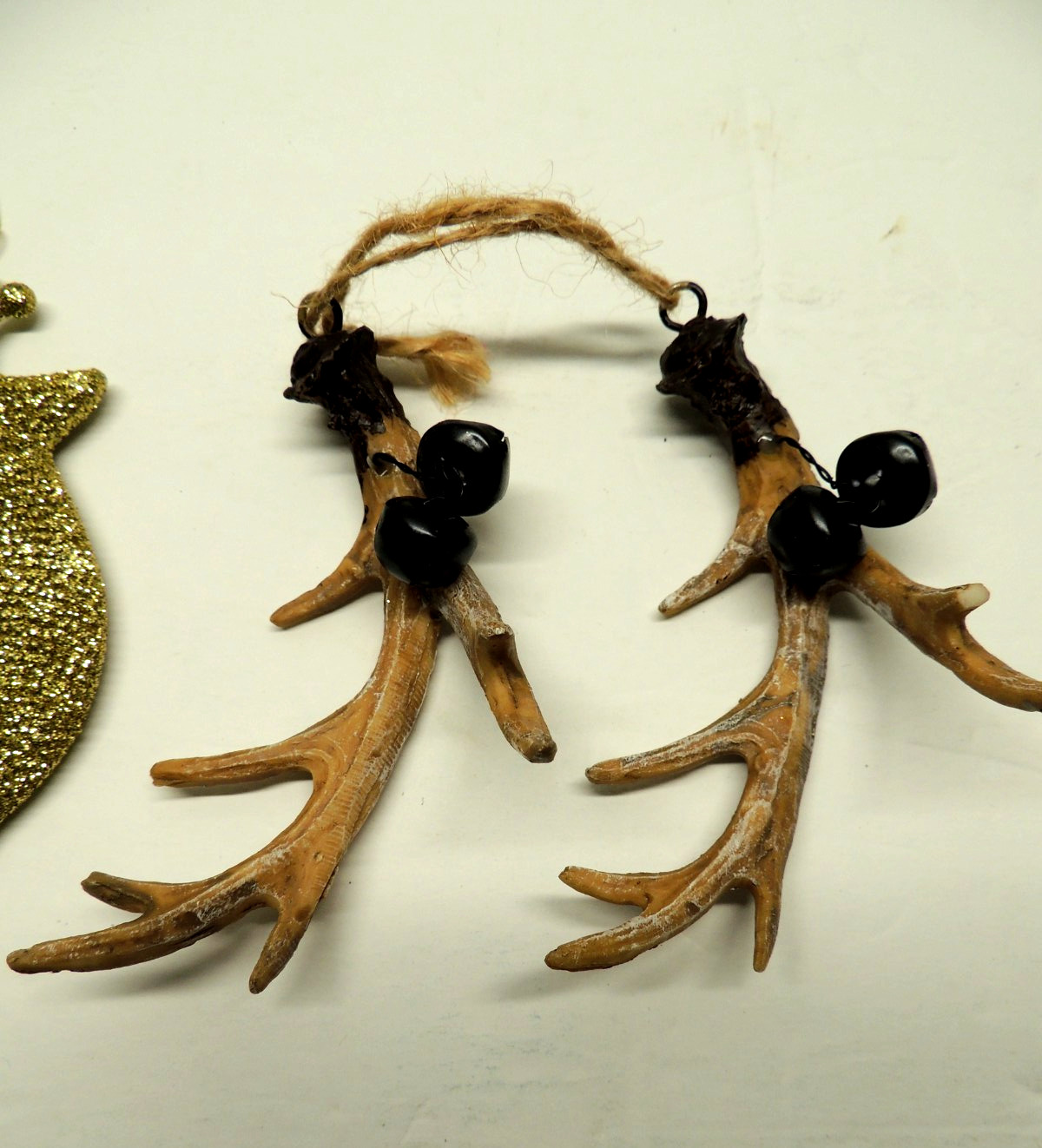 Faux Deer Antler Shiny Gold Deer Ornament Bells Christmas Tree Hanging Lodge