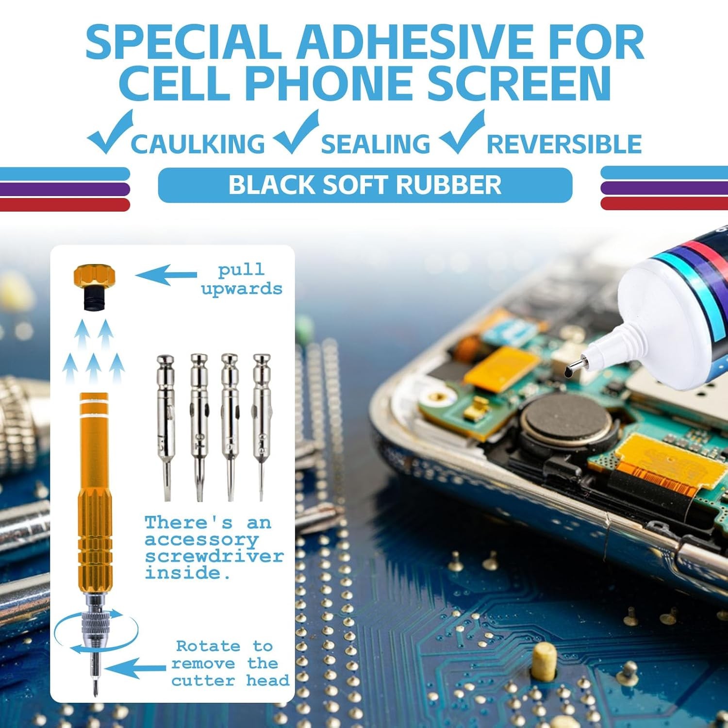 как выглядит Phone Glue, Screen Repair Adhesive with Tools for Electronic Black фото