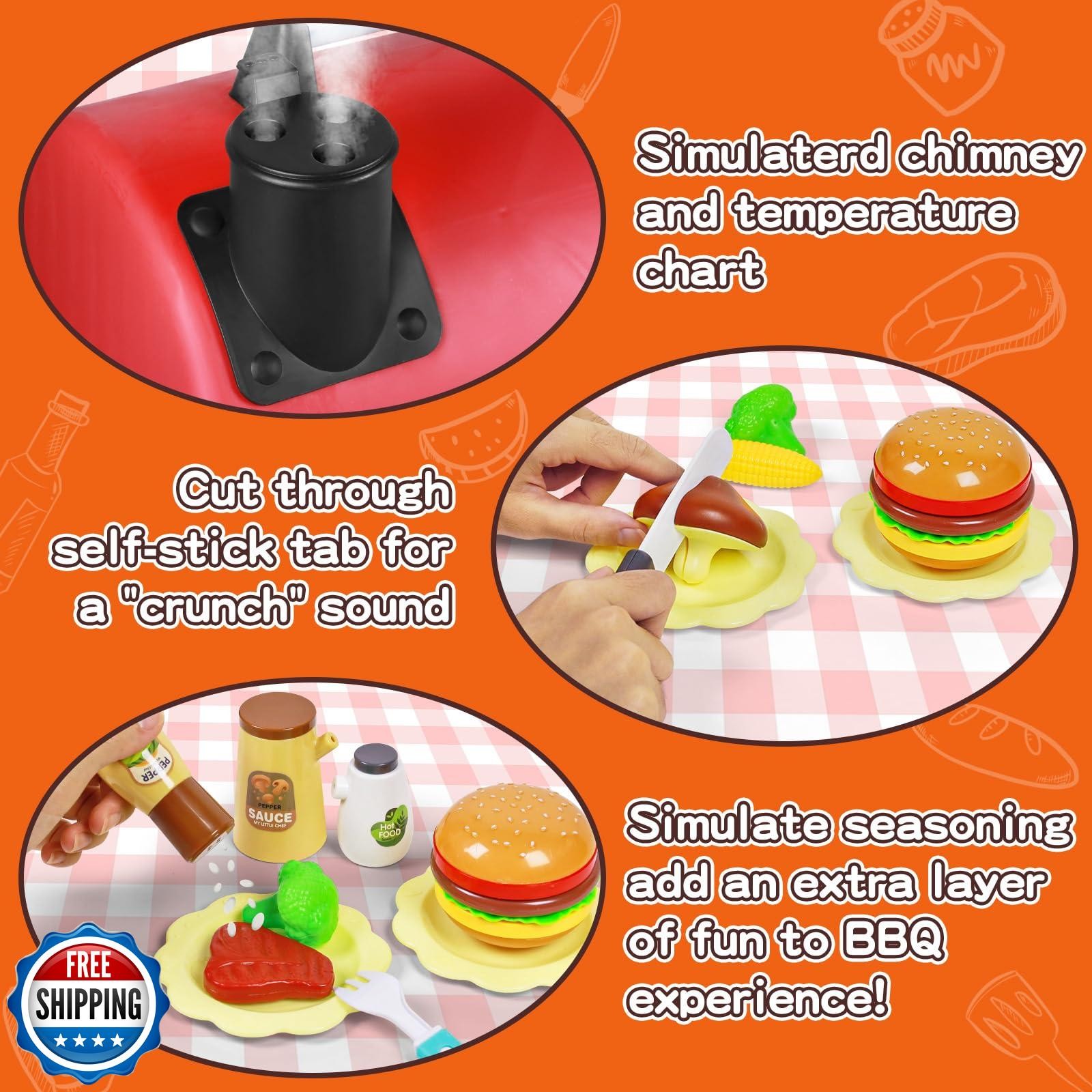 2025 Kids Kitchen Playset Toy Grill BBQ with Smoke Light Pretend