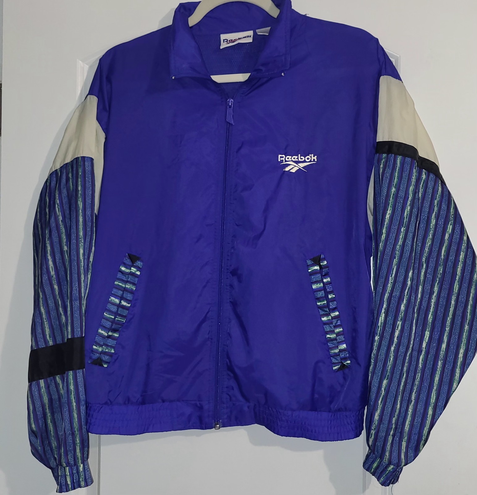 Vtg Reebok Womens Purple Blue Retro 80s 90s Windbreaker Jacket Size M Medium