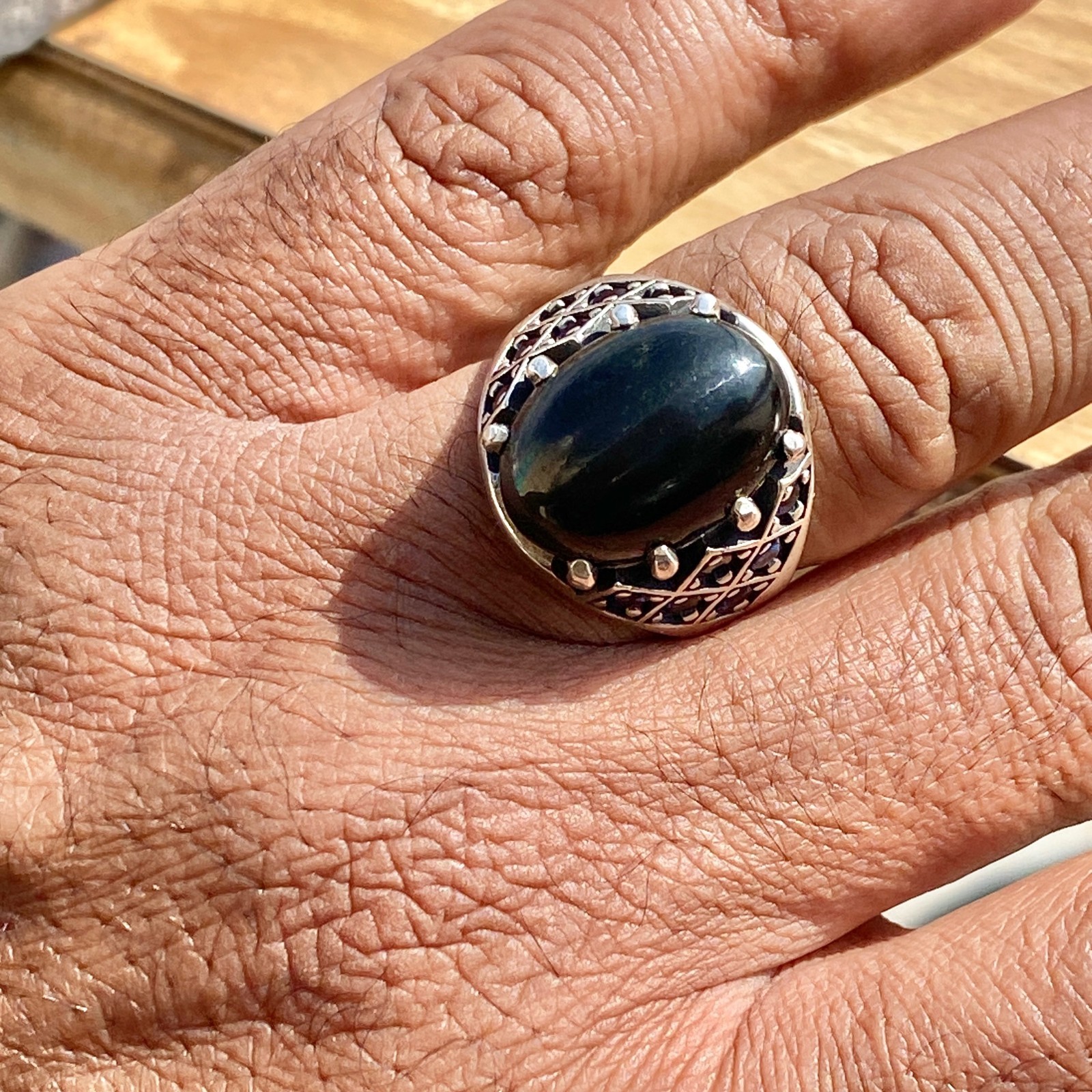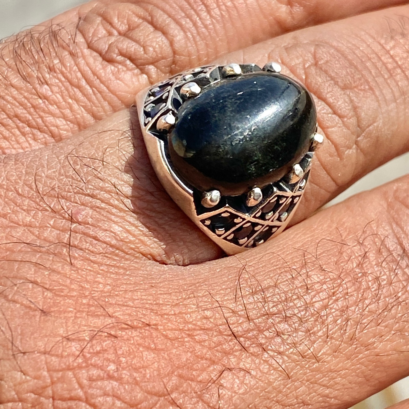 как выглядит Handcrafted Men s 925 Silver Ring Featuring Natural Garnet Rays Gem фото