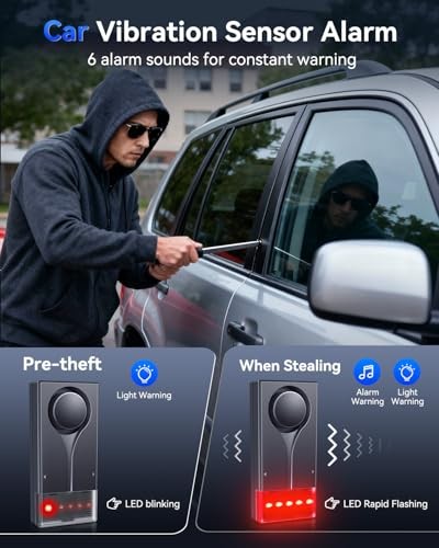108dB Car Alarm System, Car Anti-Theft Vibration Sensor Alarm Red Light, 2