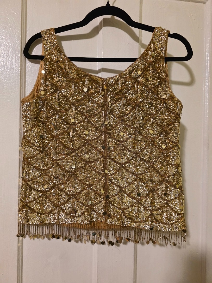 Gold Sequin and beaded top vintage 1960 - 70s Size small