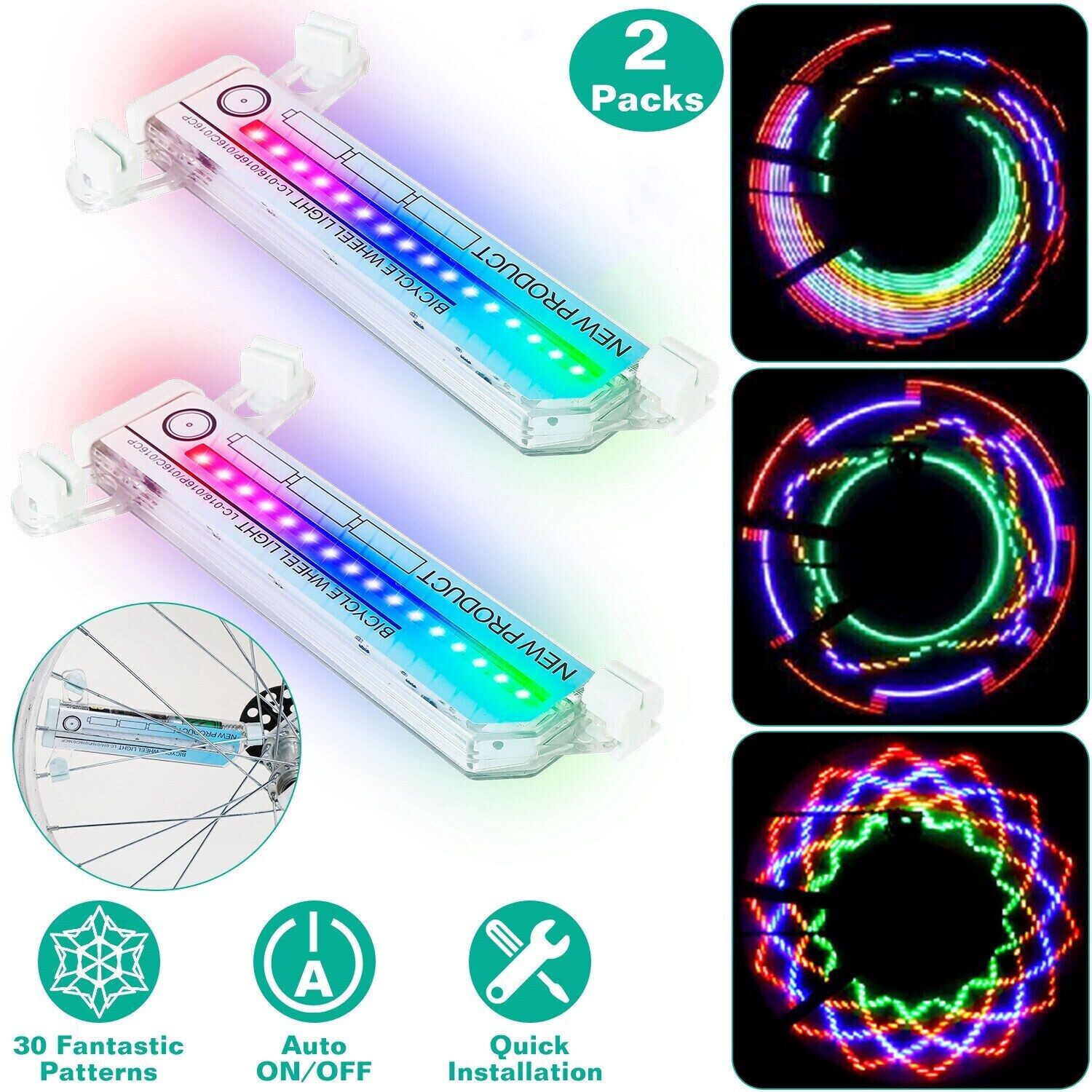 как выглядит 2PCS 32 LED Colorful Flashing Bicycle Cycling Wheel Spoke Signal Light For Bike фото
