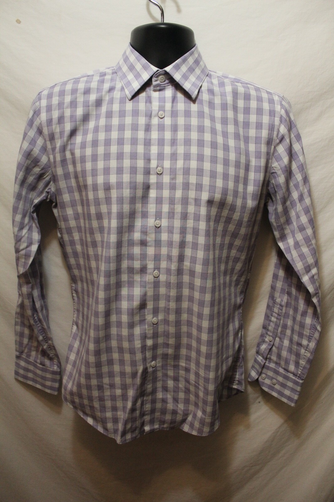 Dress Shirt 100 Cotton Dress Shirt Mens 14 1/2 32-33 Purple Plaid Trim Fit