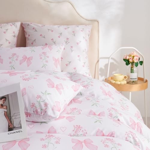 как выглядит Pink Bow Duvet Cover Full Girls Pink Full No Comforter Pink Bowknot Jfs752 фото