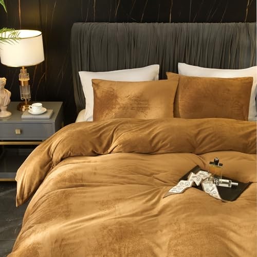 Velvet Duvet Cover Set Velvet Duvet Cover Comforter Cover 3Pcs Queen Rust