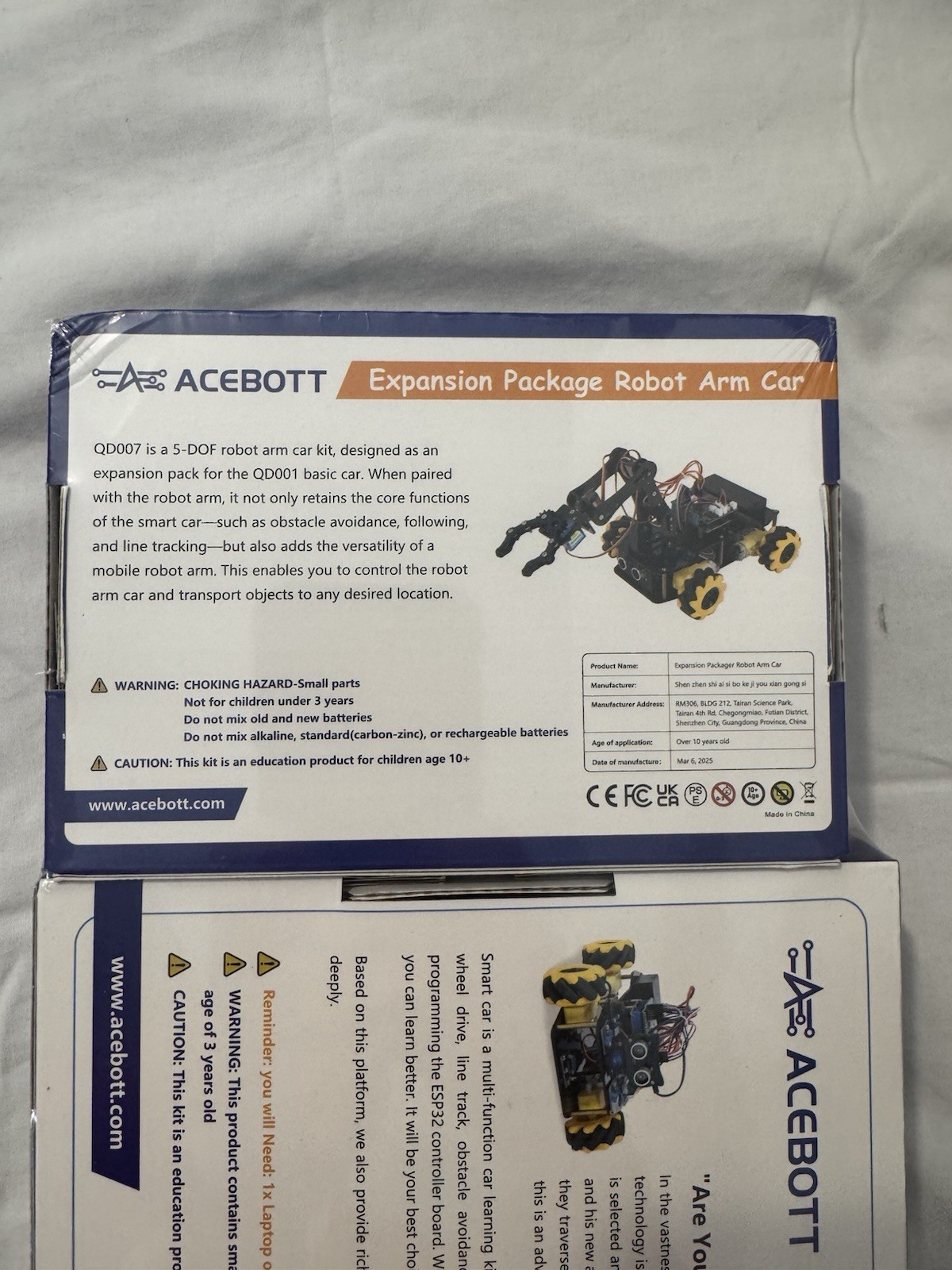 как выглядит ACEBOTT QD001 Smart Car Kit QD007 Robot Arm Expansion  4WD ESP32 STEM Robot фото