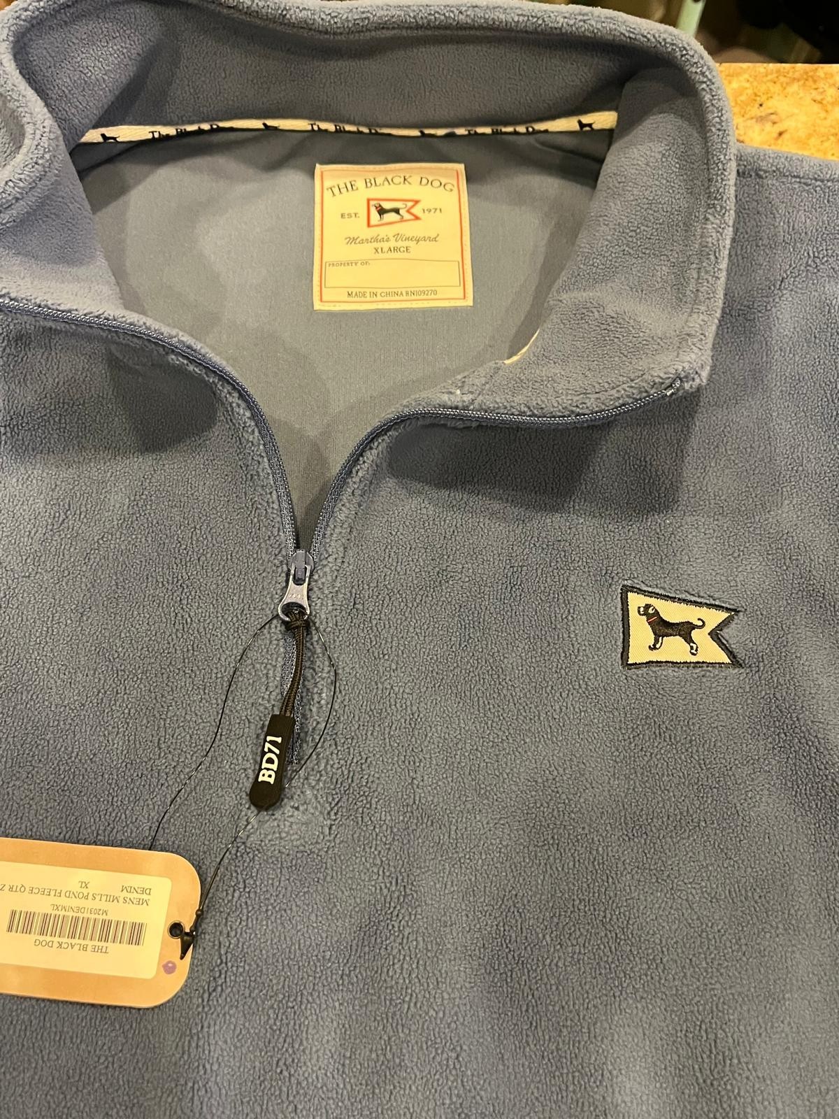 The Black Dog Martha Vineyard Men's Mills Pond Fleece Qtr Zip Denim Shirt Sz XXL