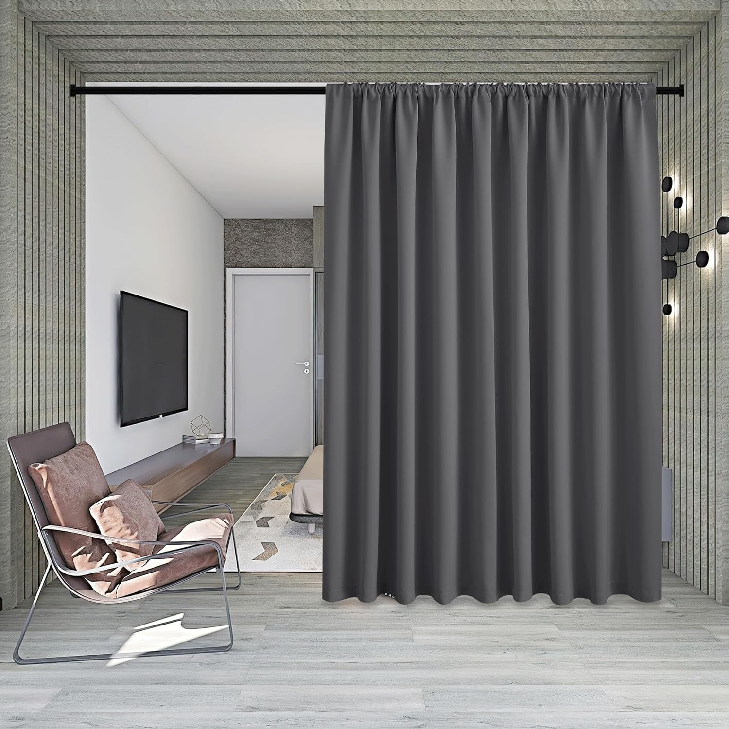 как выглядит Room Divider Curtain Set with Ceiling Track, Privacy Blackout Thermal Insulated фото