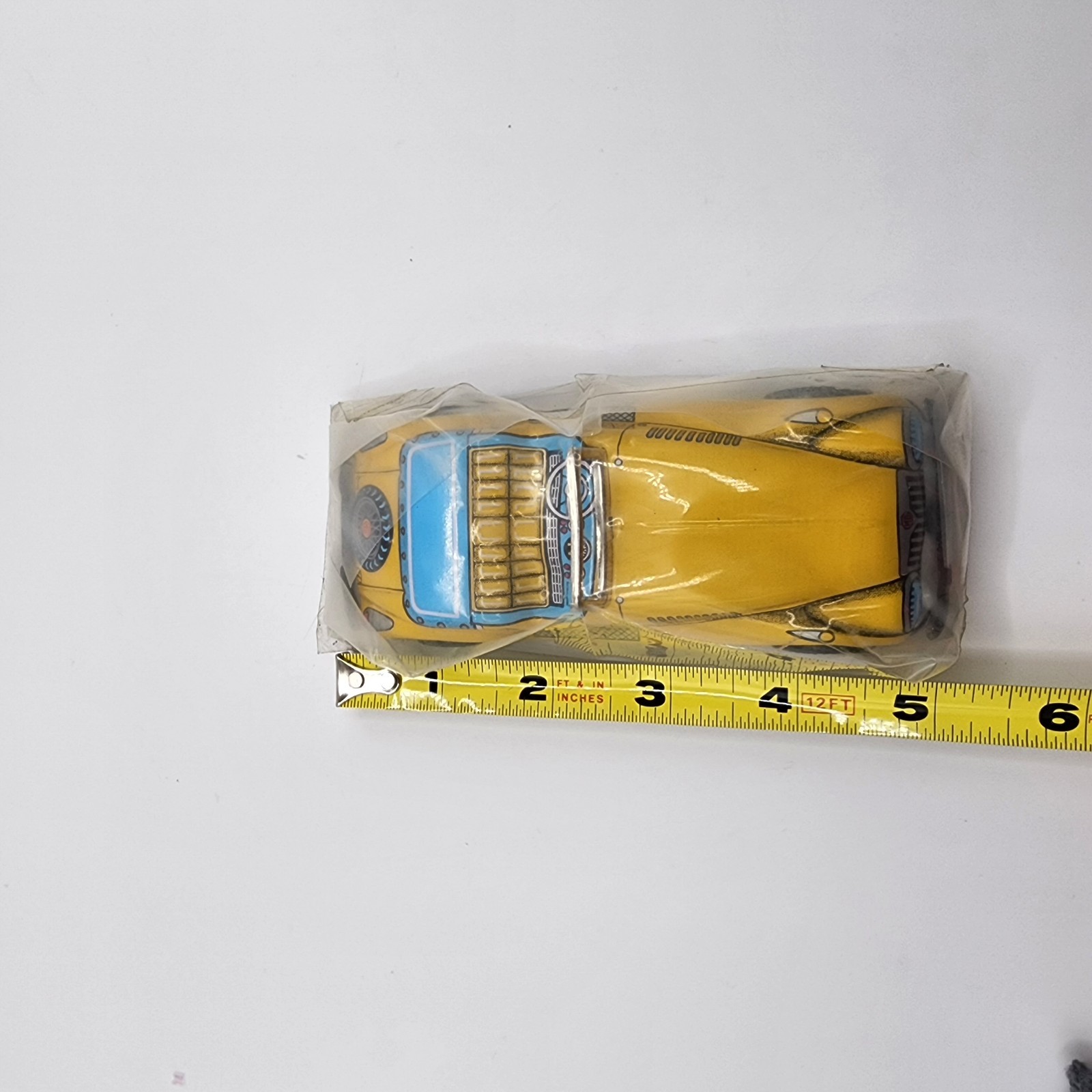 как выглядит Vintage Yellow Metal Car From Japan New Sealed Tin Toy фото