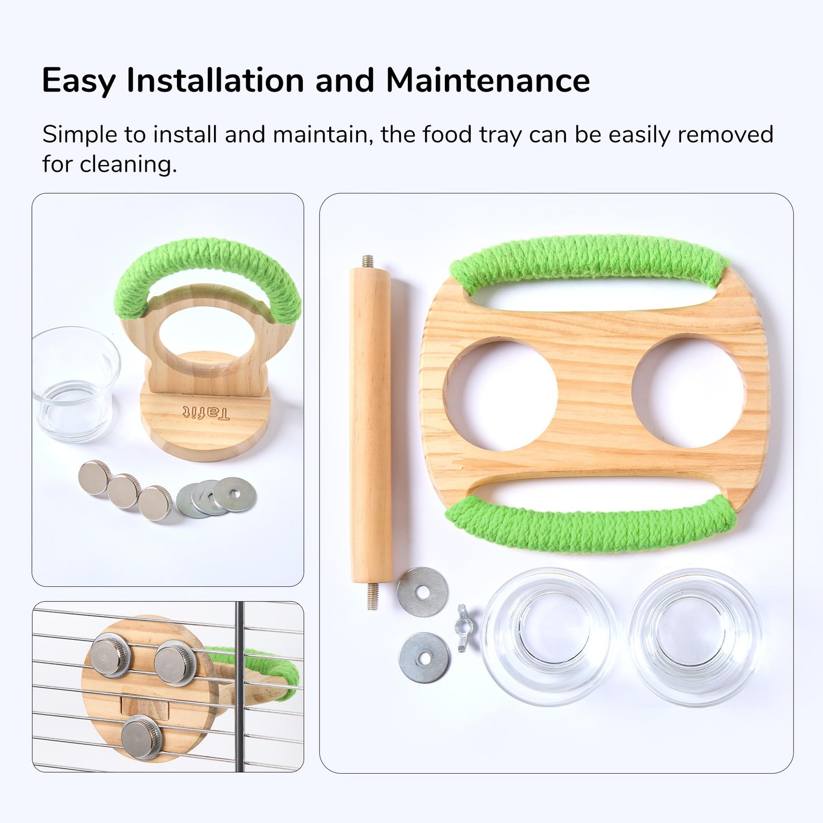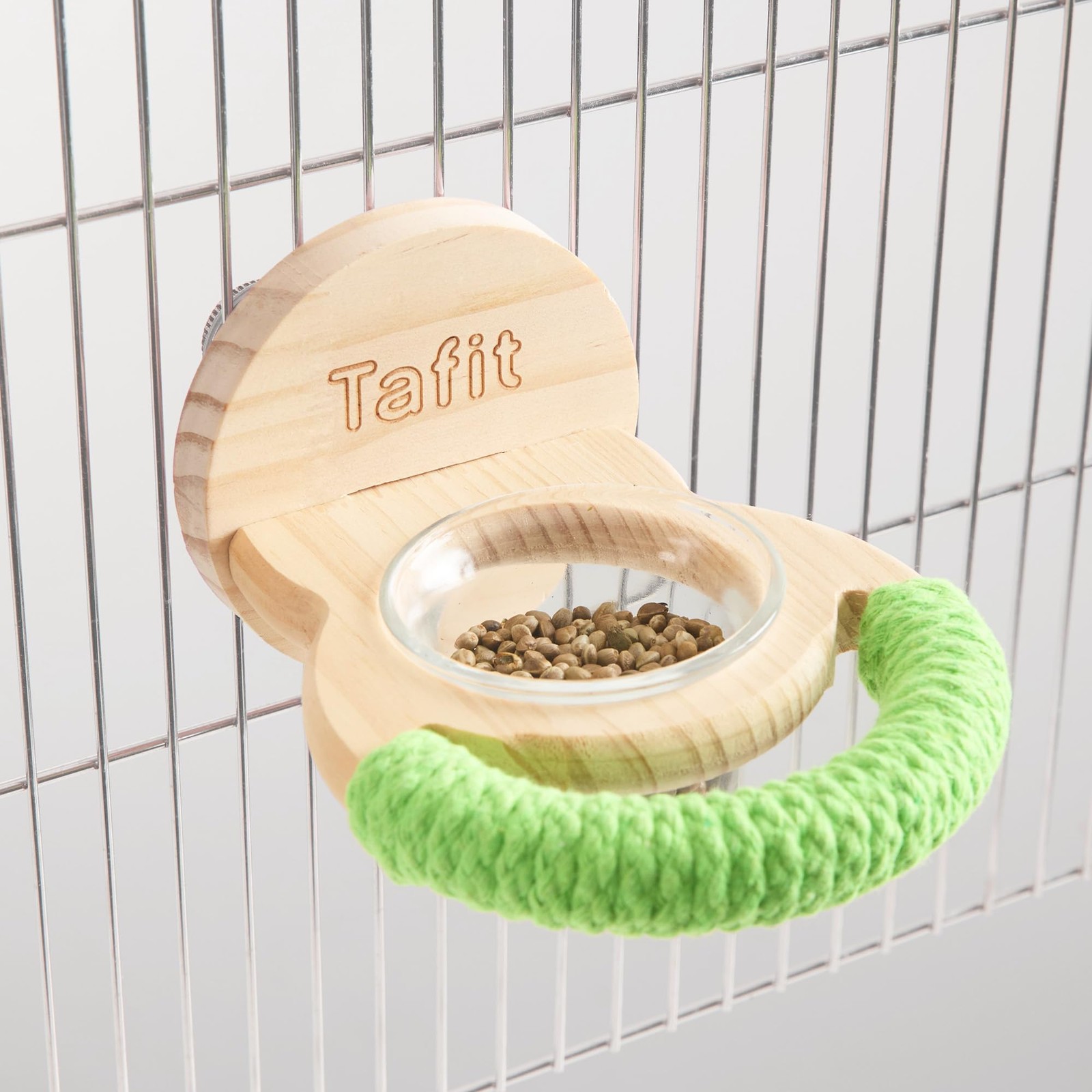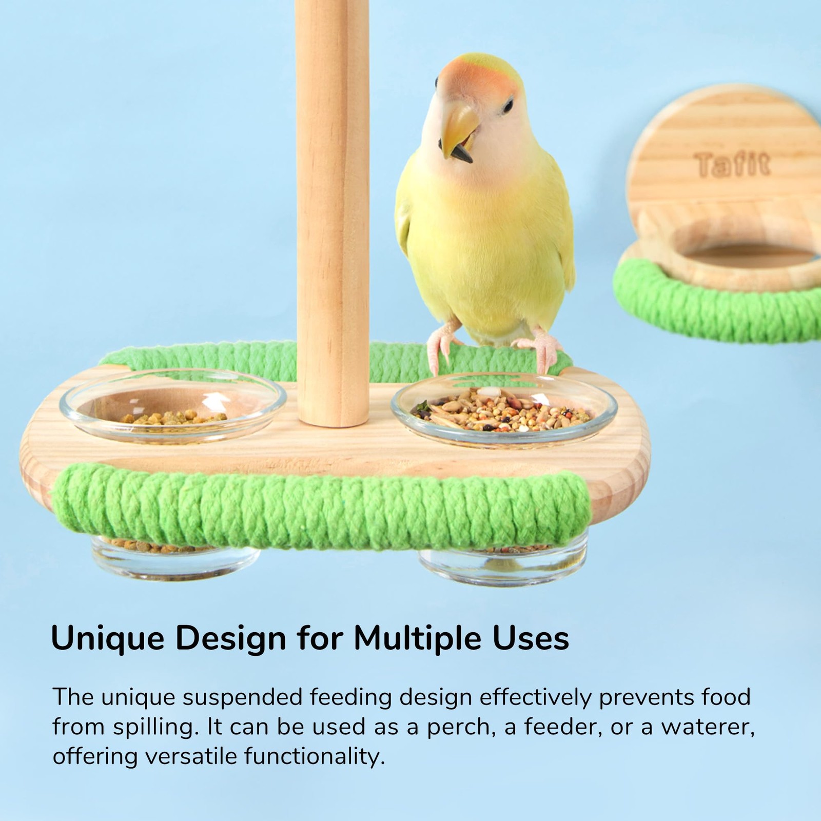 Bird Feeder Perch Includes Cotton Rope Perch and Glass Feeding Cup Cage...