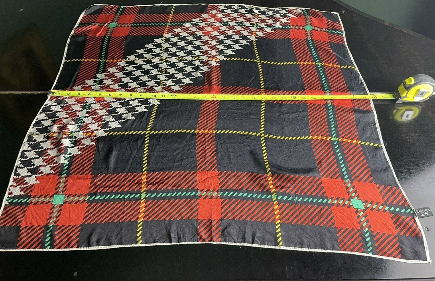 VTG Red Black Plaid 100 Silk Hand Rolled Hem by Specialty House Japan 31 x 31