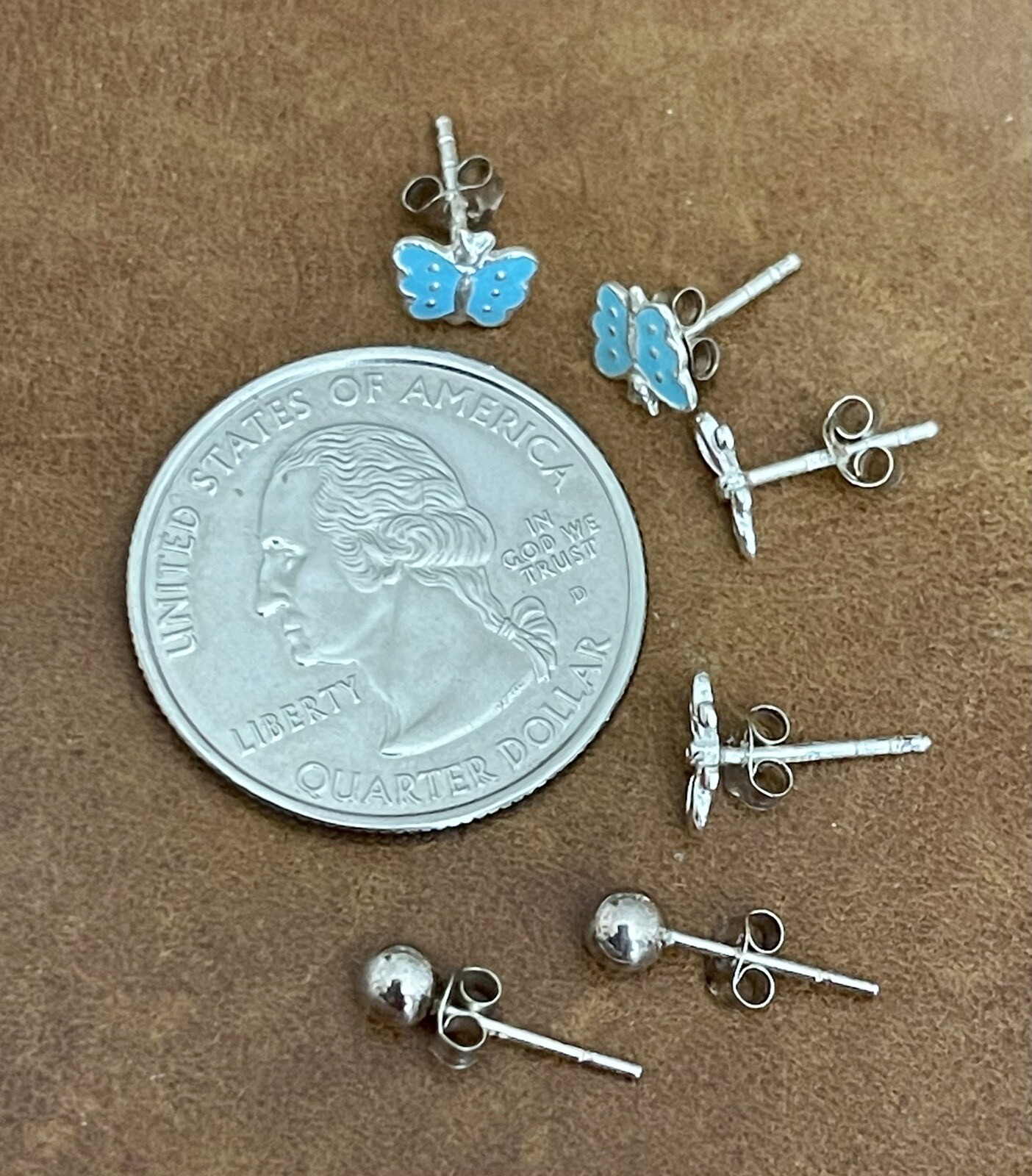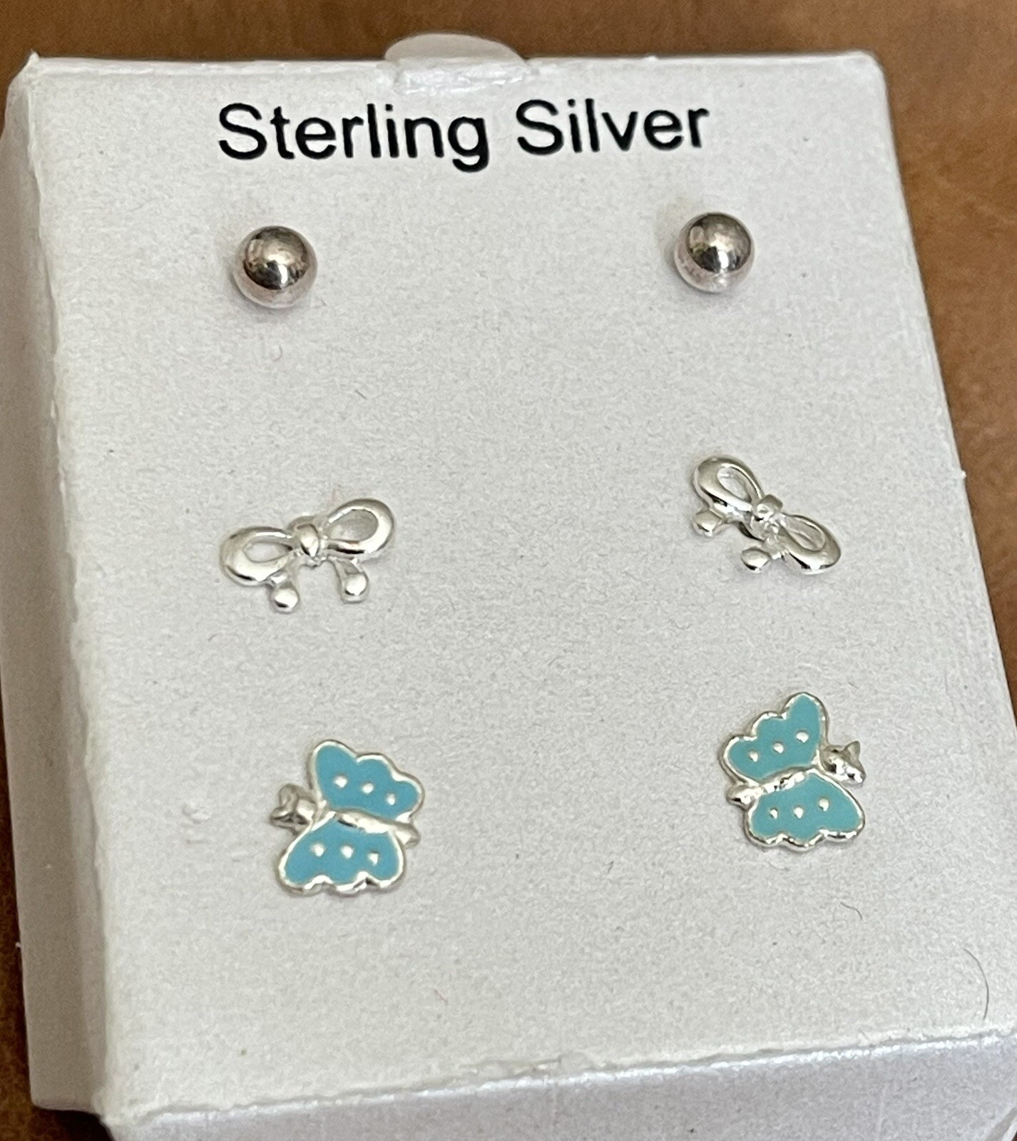 как выглядит Pretty Charming Girl Kids Sterling Silver Tiny Butterfly  3 Stud Earrings Set фото