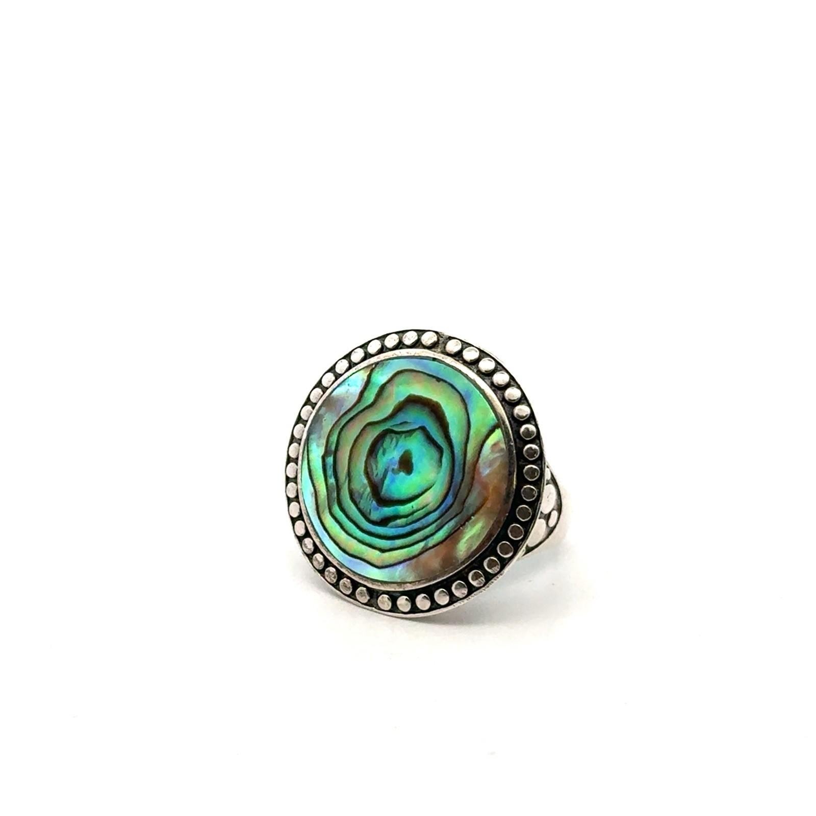 925 Sterling Silver Round Abalone Shell Silver Dot Ring, Size-9, 8.7g