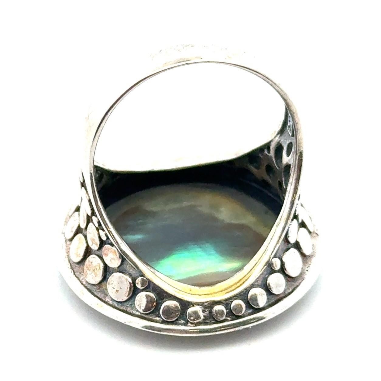как выглядит 925 Sterling Silver Round Abalone Shell Silver Dot Ring, Size-9, 8.7g фото