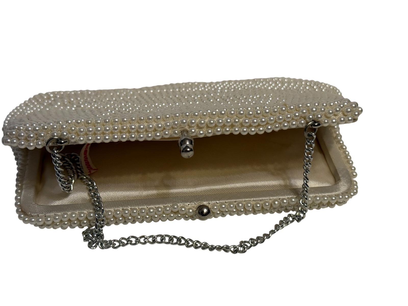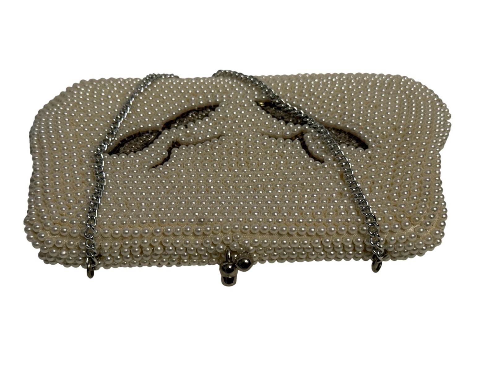 VTG BEADED CLUTCH PURSE Made in Japan Pearl Beads Evening Bag 5x7 Chain