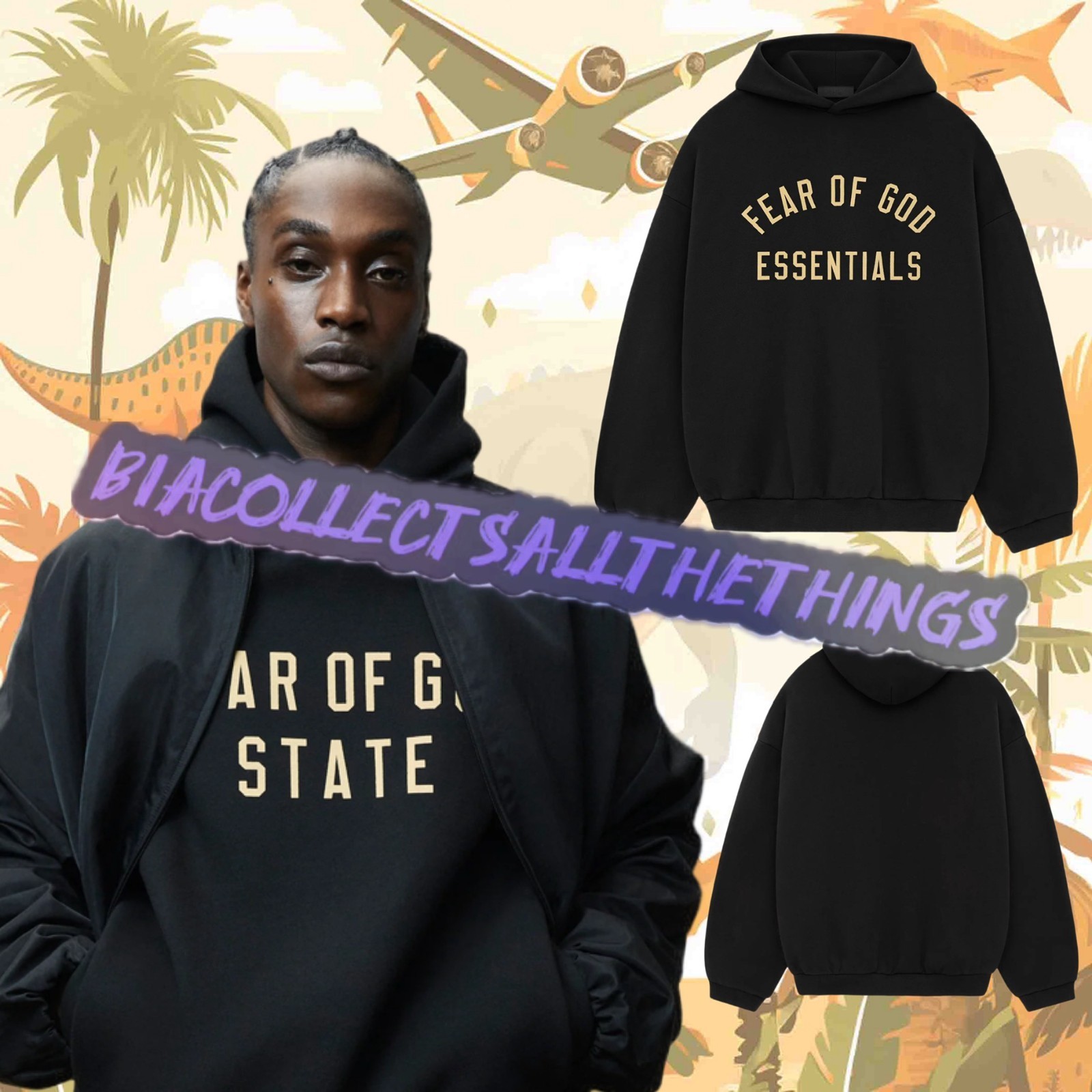 BRAND NEW - FEAR OF GOD essentials STATE hoodie FW24 BLACK size Large NTW