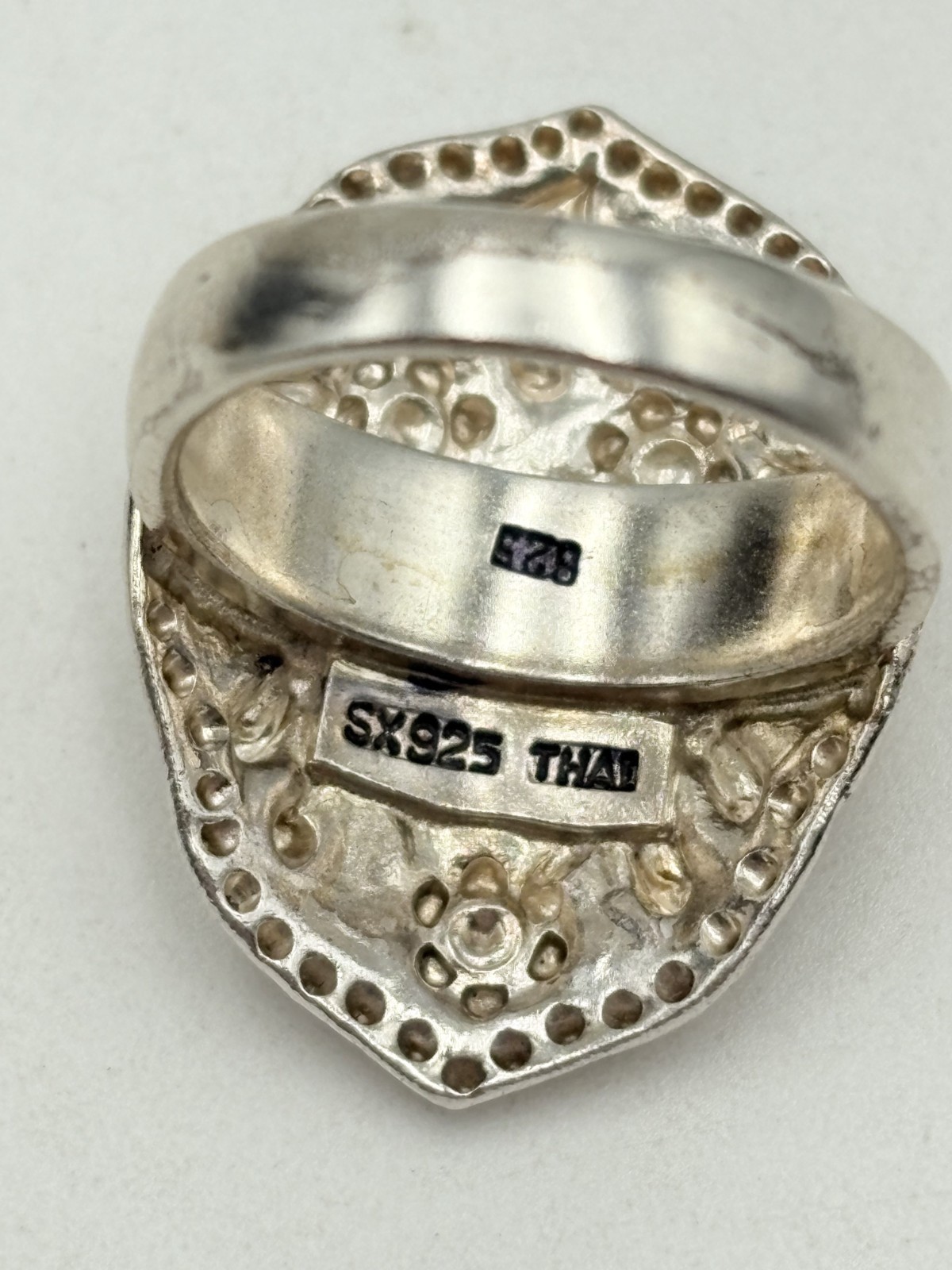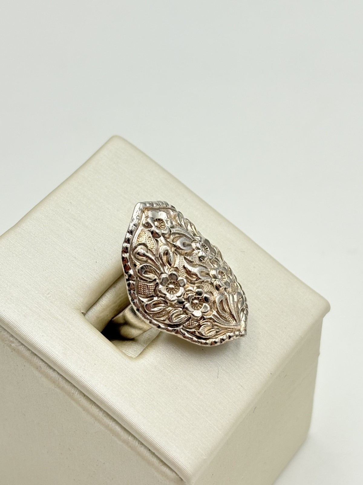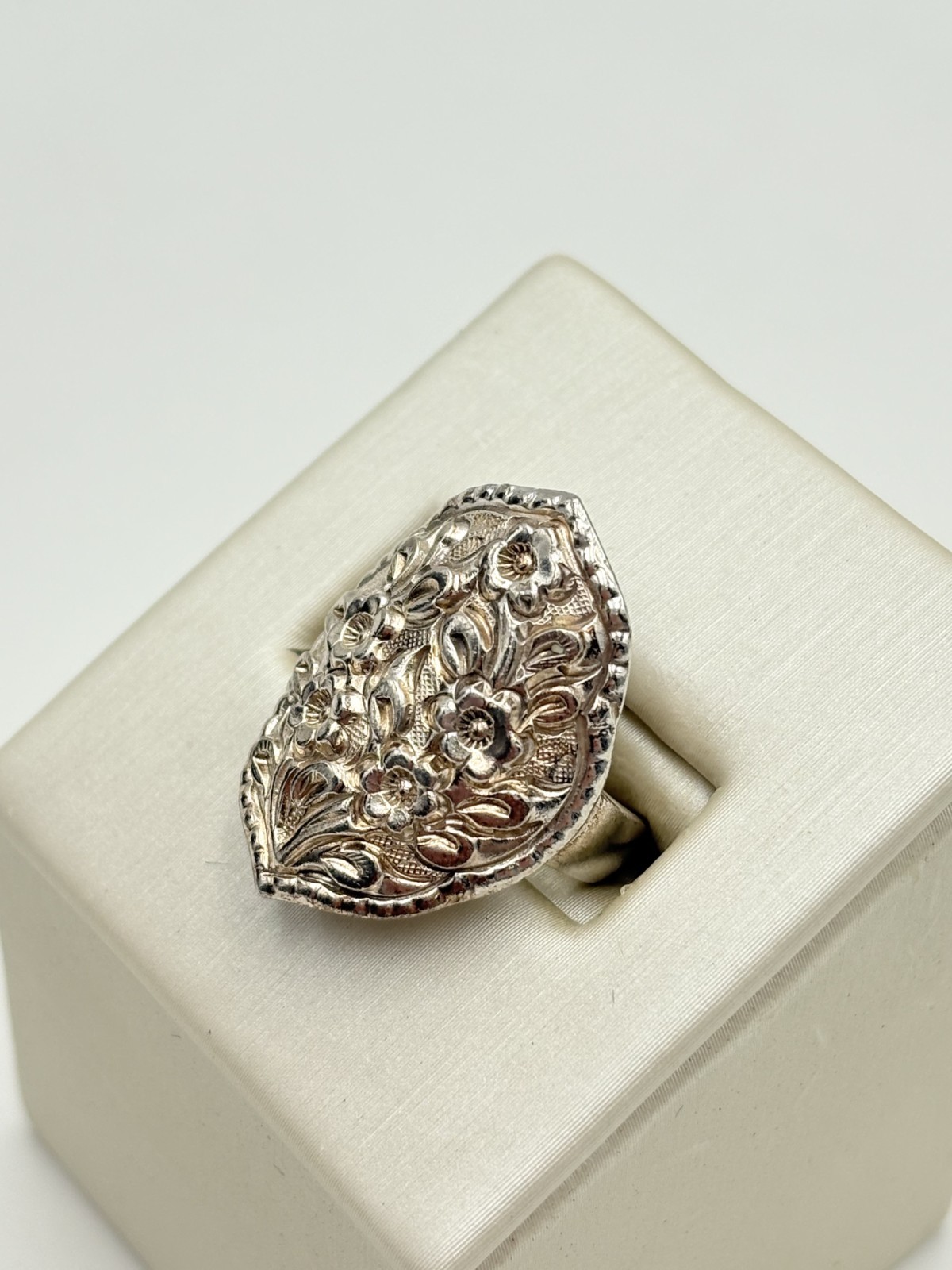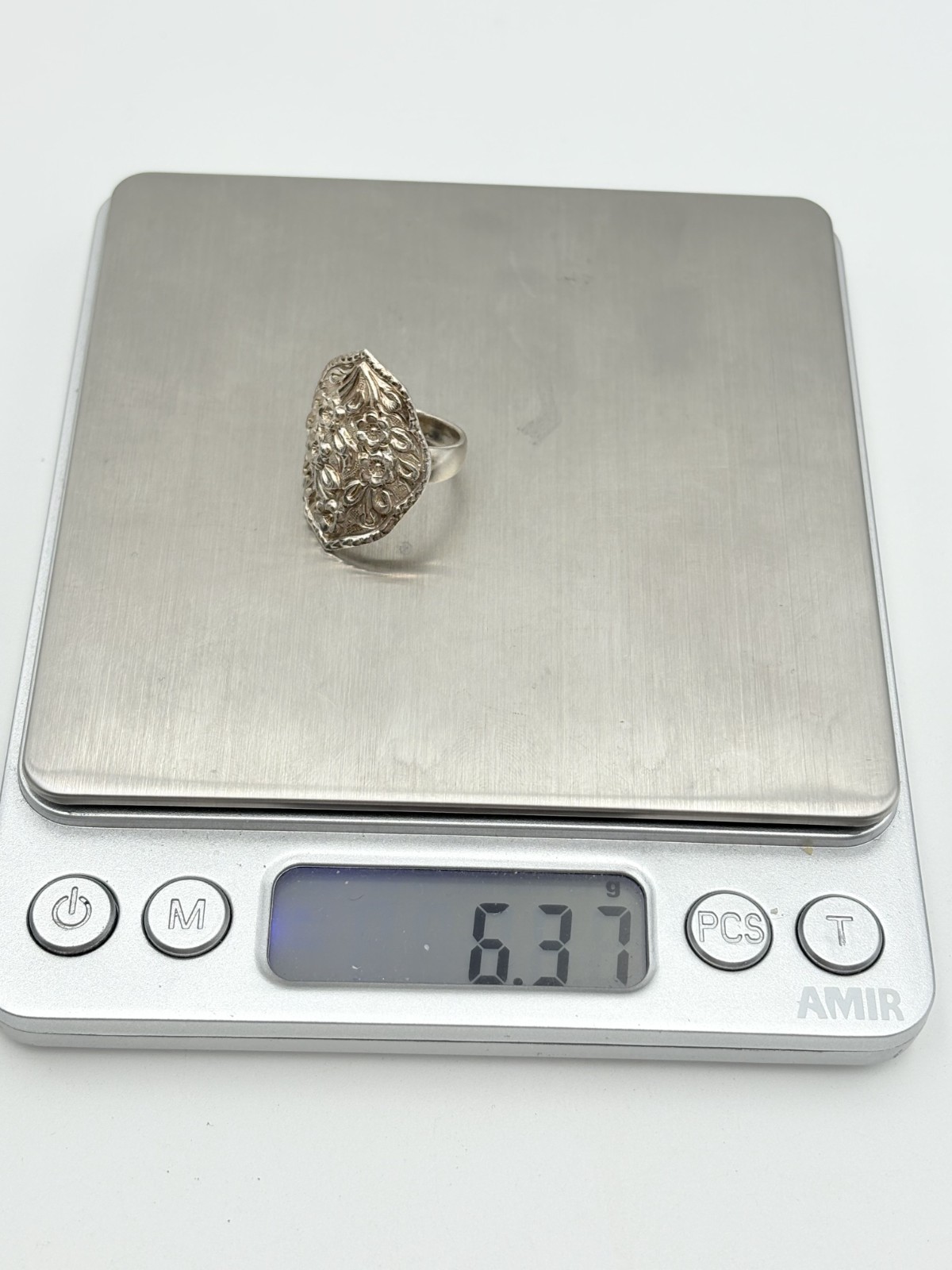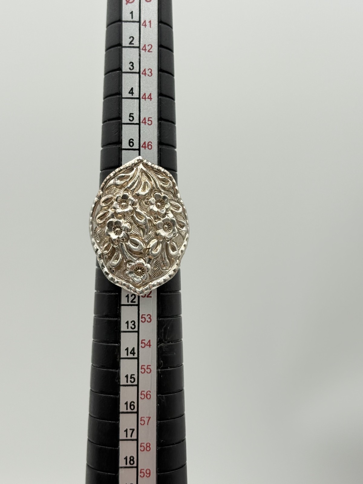как выглядит STERLING SILVER 925 SX FLORAL 3.7 mm BAND SIZE 5 RING 6.4g фото