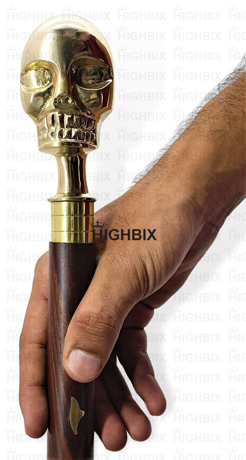 Designer Brass Skull Head Handle Wooden Walking Stick Cane 3-Fold Walking Cane