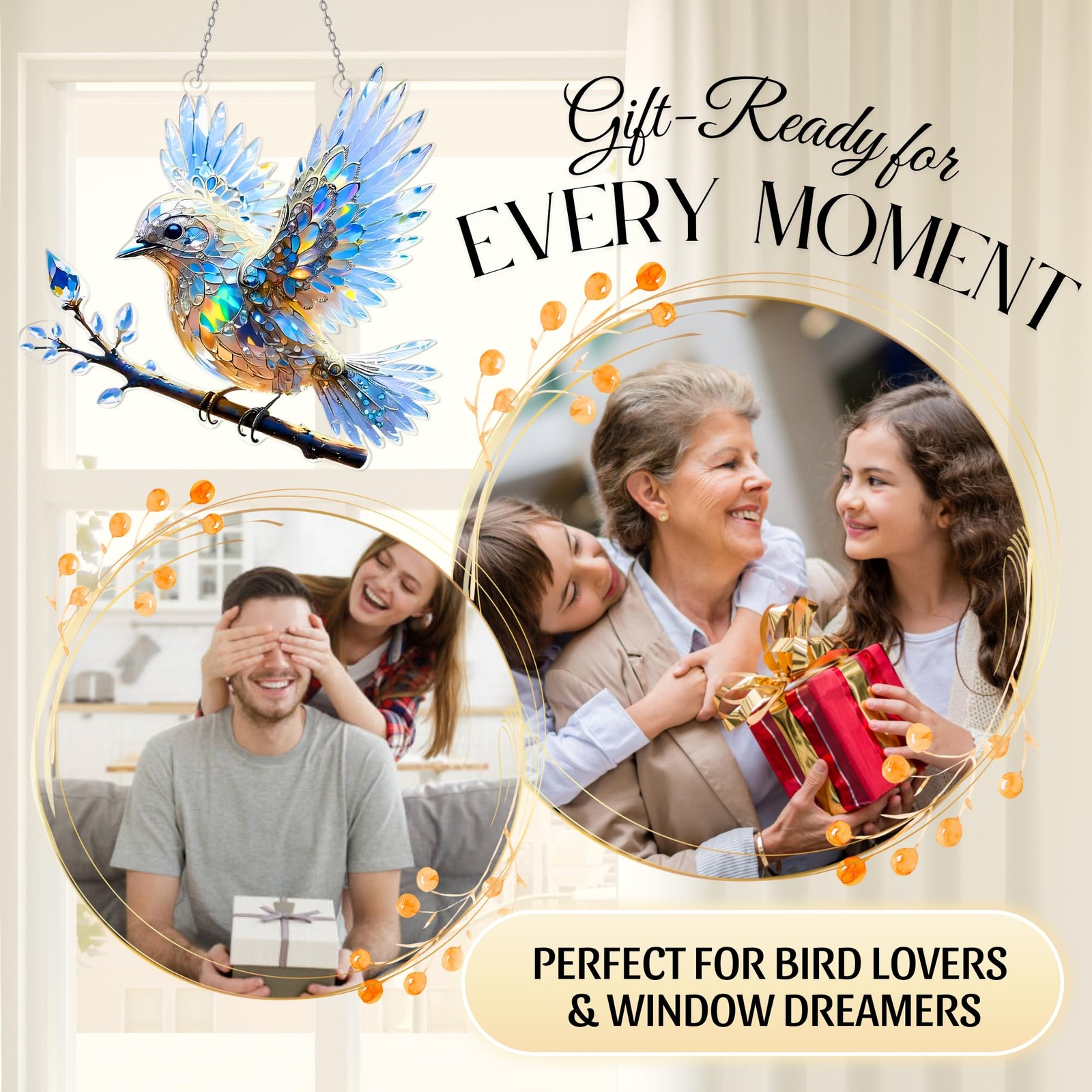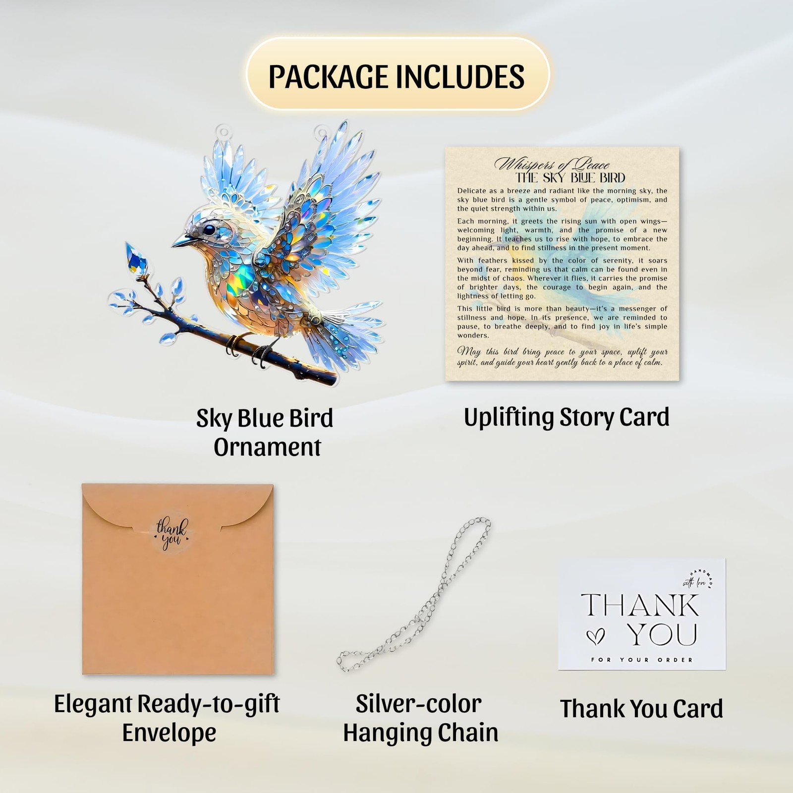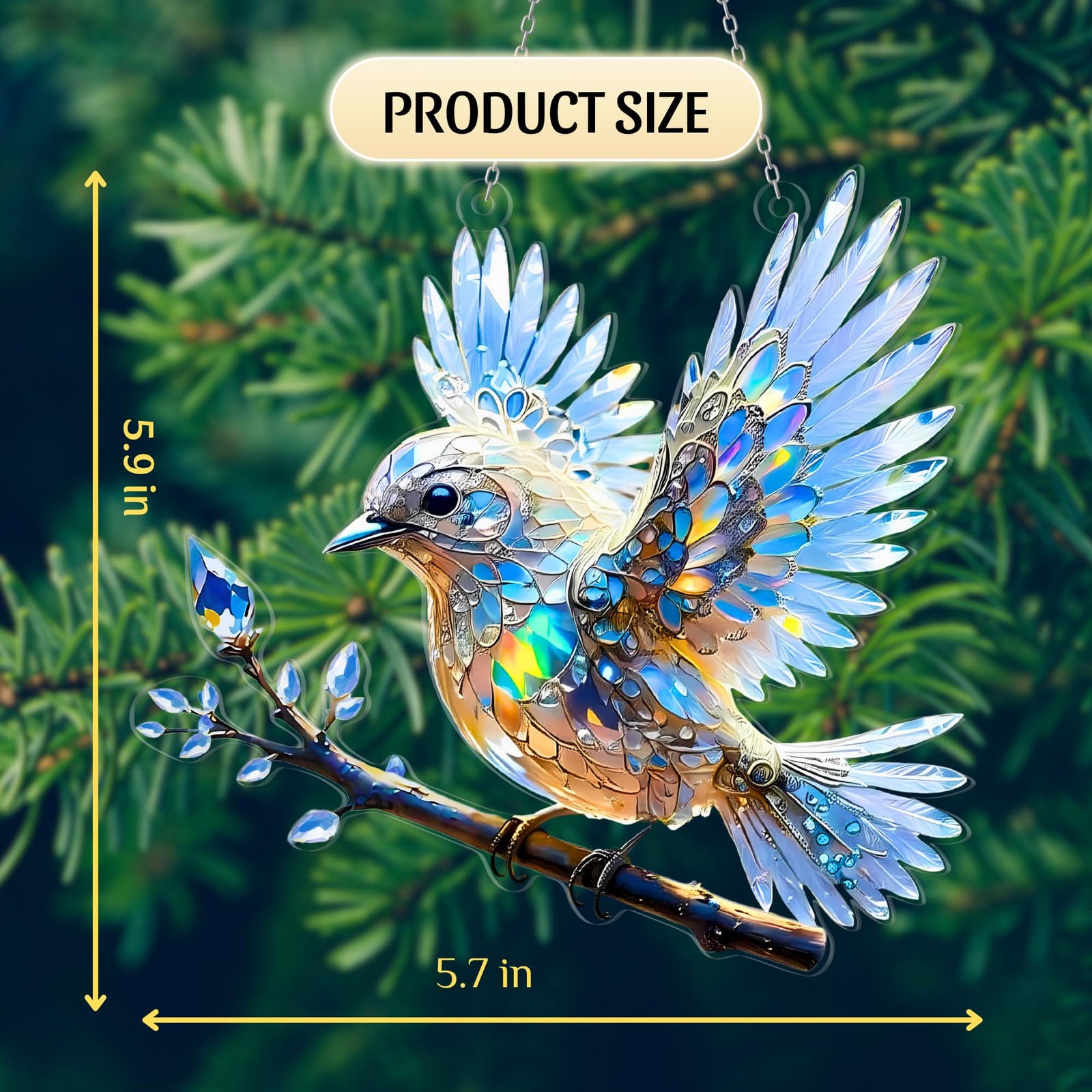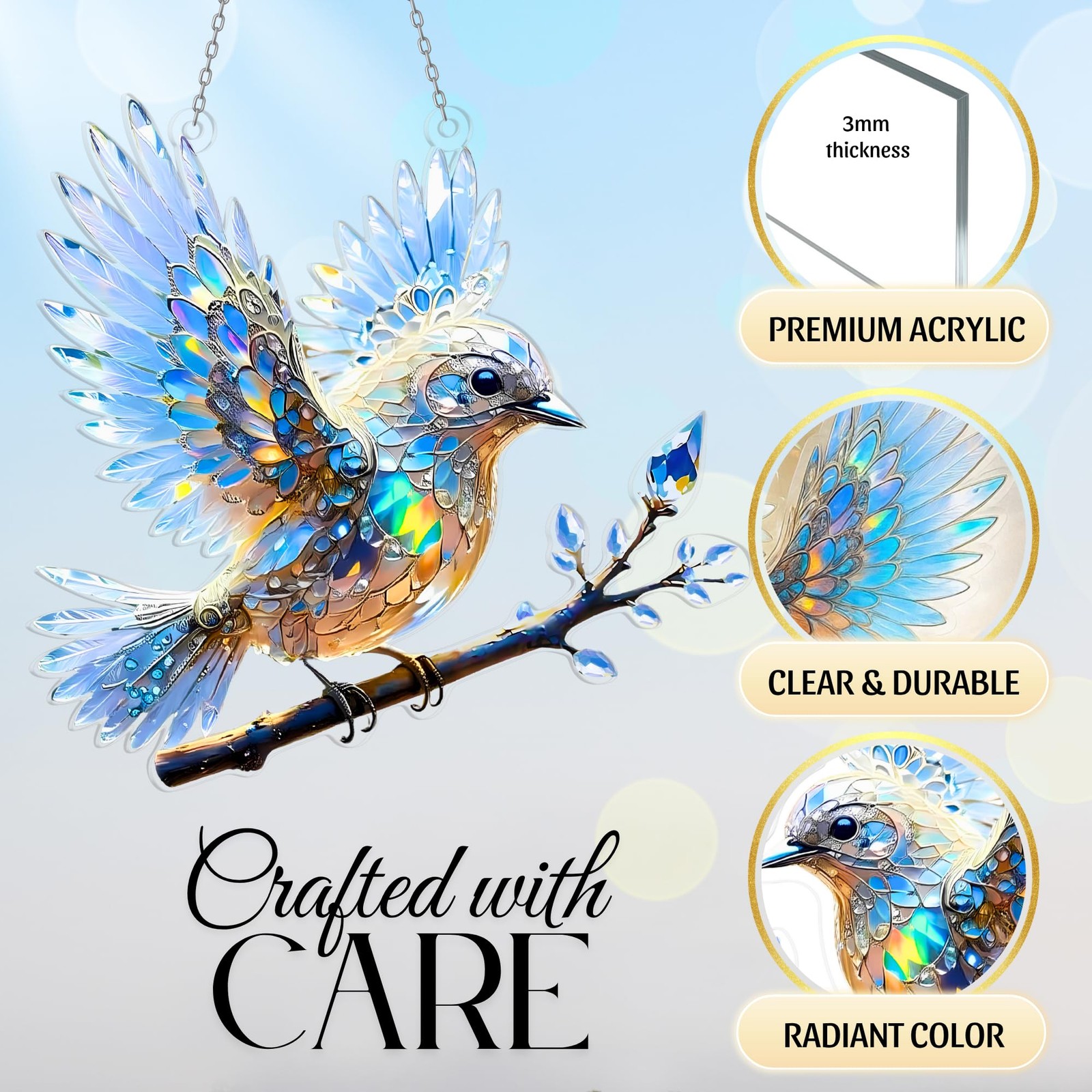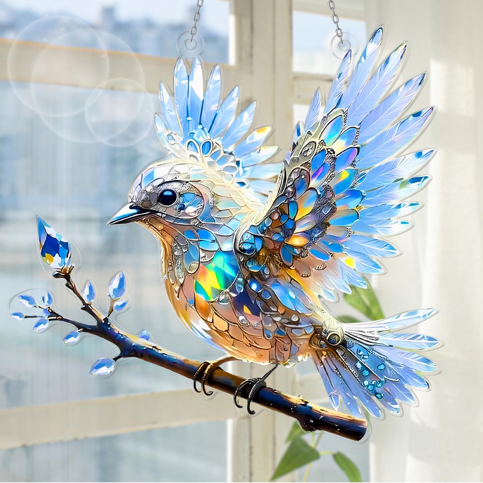 Crystal Sky Bluebird Acrylic Ornament 8 Inch - Window Hanging Spirit Bluebi...
