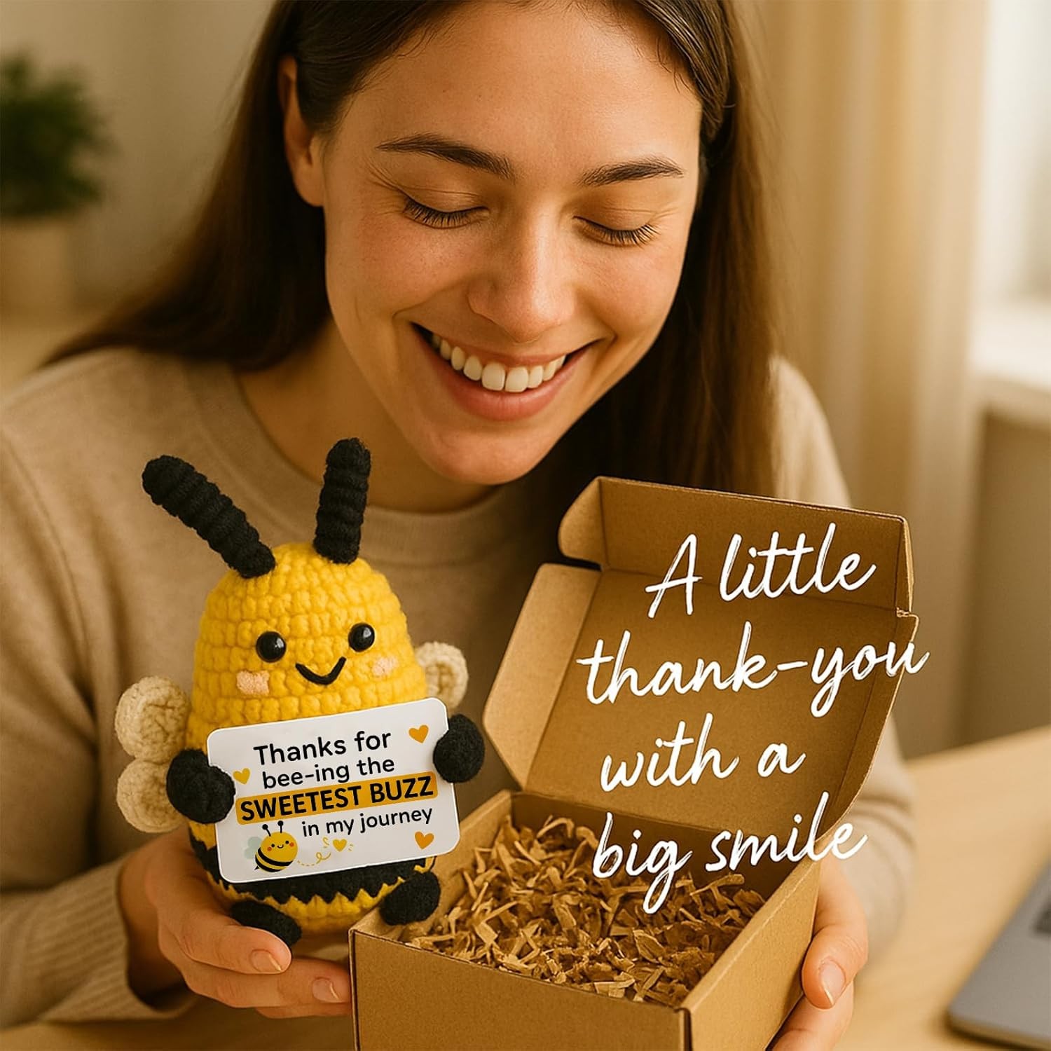 Handmade Crochet Bee Plush with Thank You Card Positive Gift for Women Men