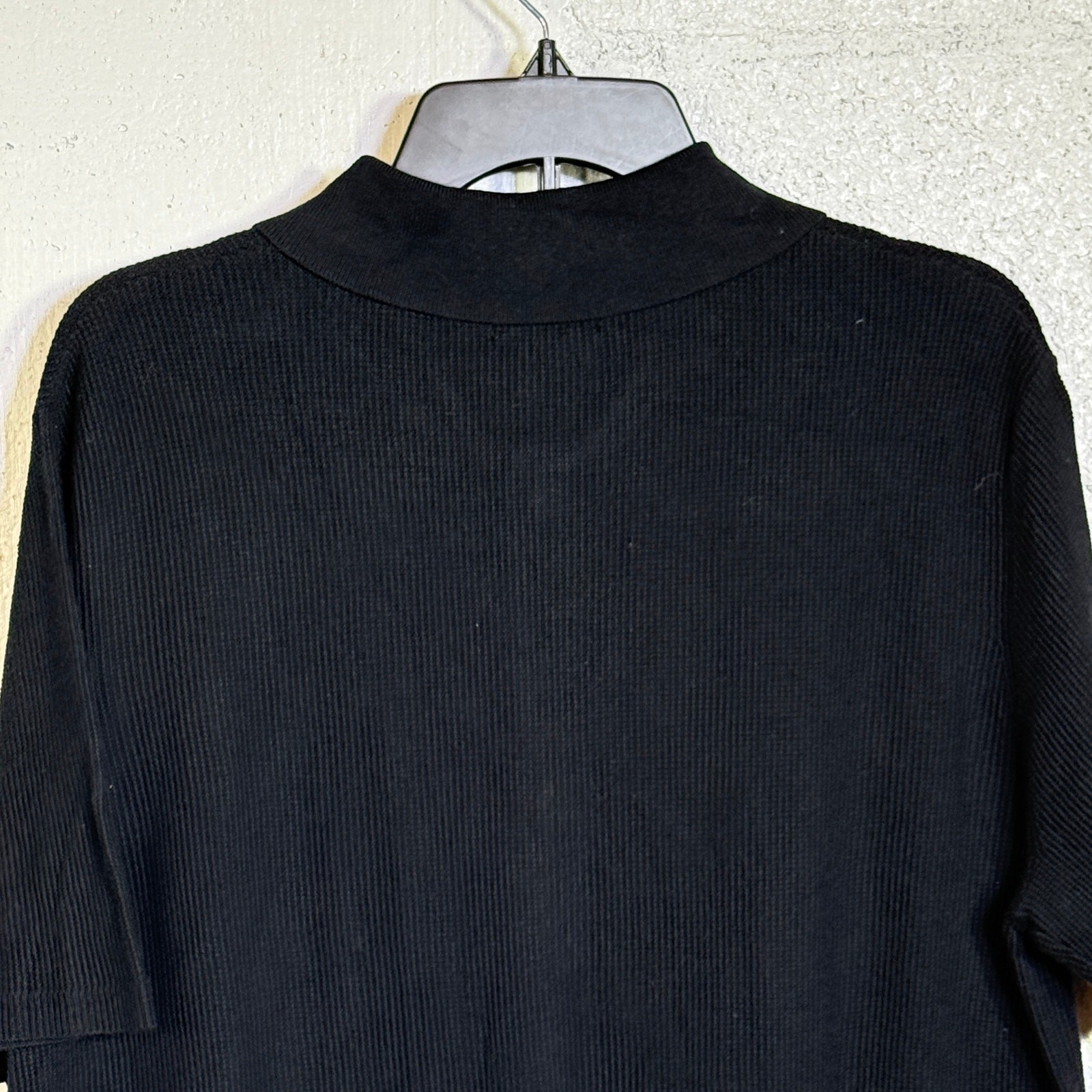 как выглядит Alfani Mens S/S Textured Knit Button-Down Polo Shirt black Medium 50 фото