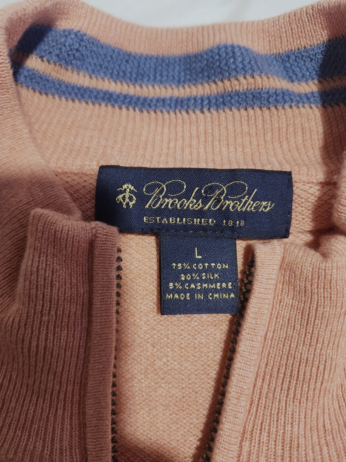как выглядит Brooks Brothers Sweater Mens Large L Peach 1/4 Zip Silk Cashmere Blend Pullover фото