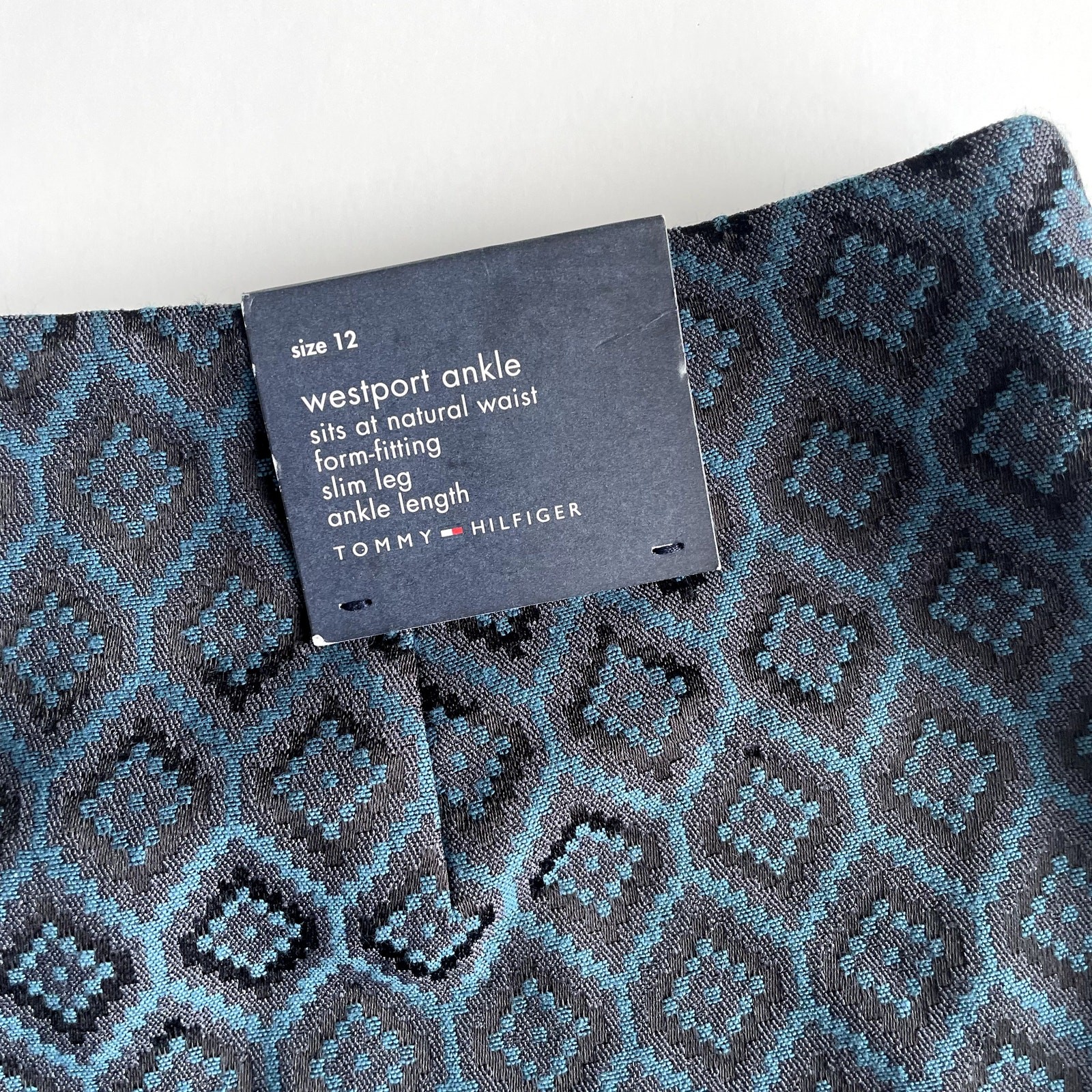 NWT Tommy Hilfiger Westport Ankle Pants Size 12 Blue Black Geometric Print
