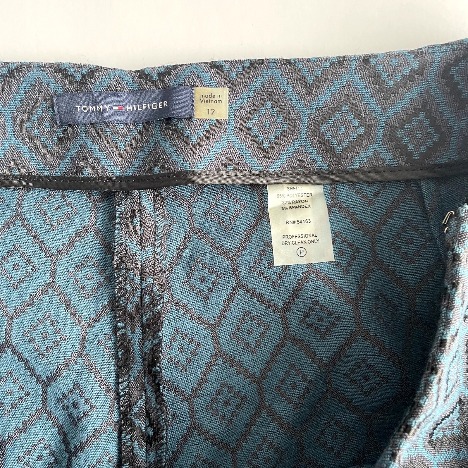 как выглядит NWT Tommy Hilfiger Westport Ankle Pants Size 12 Blue Black Geometric Print фото